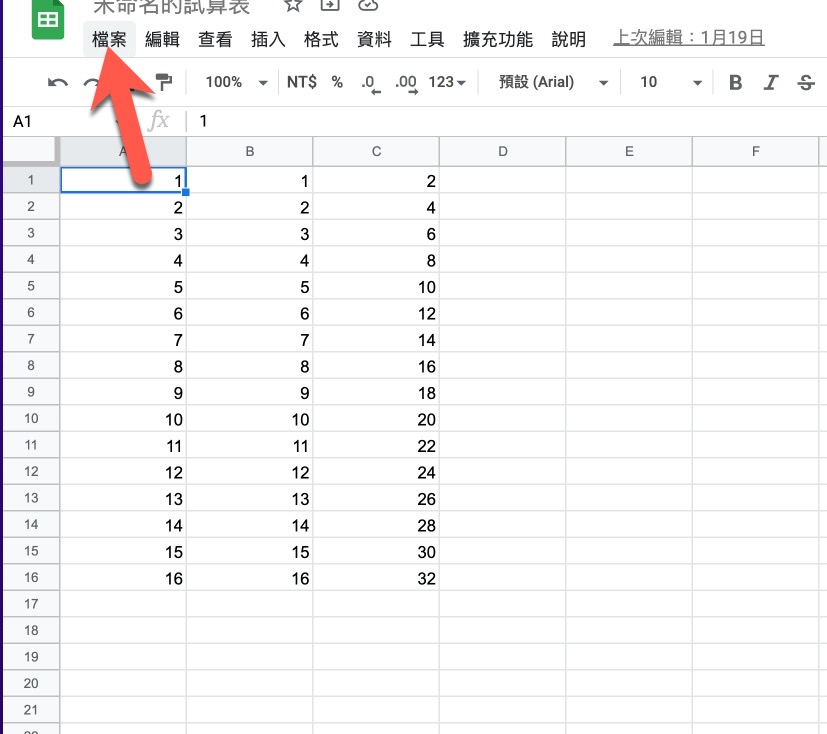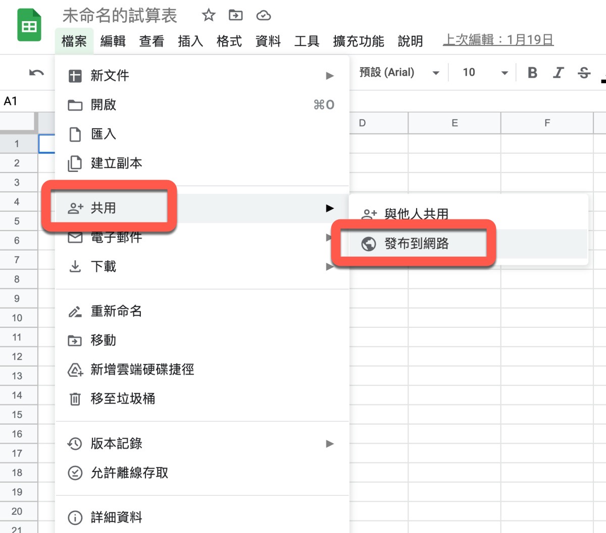 在想要嵌入的 Google 試算表點擊左上角的「檔案」。