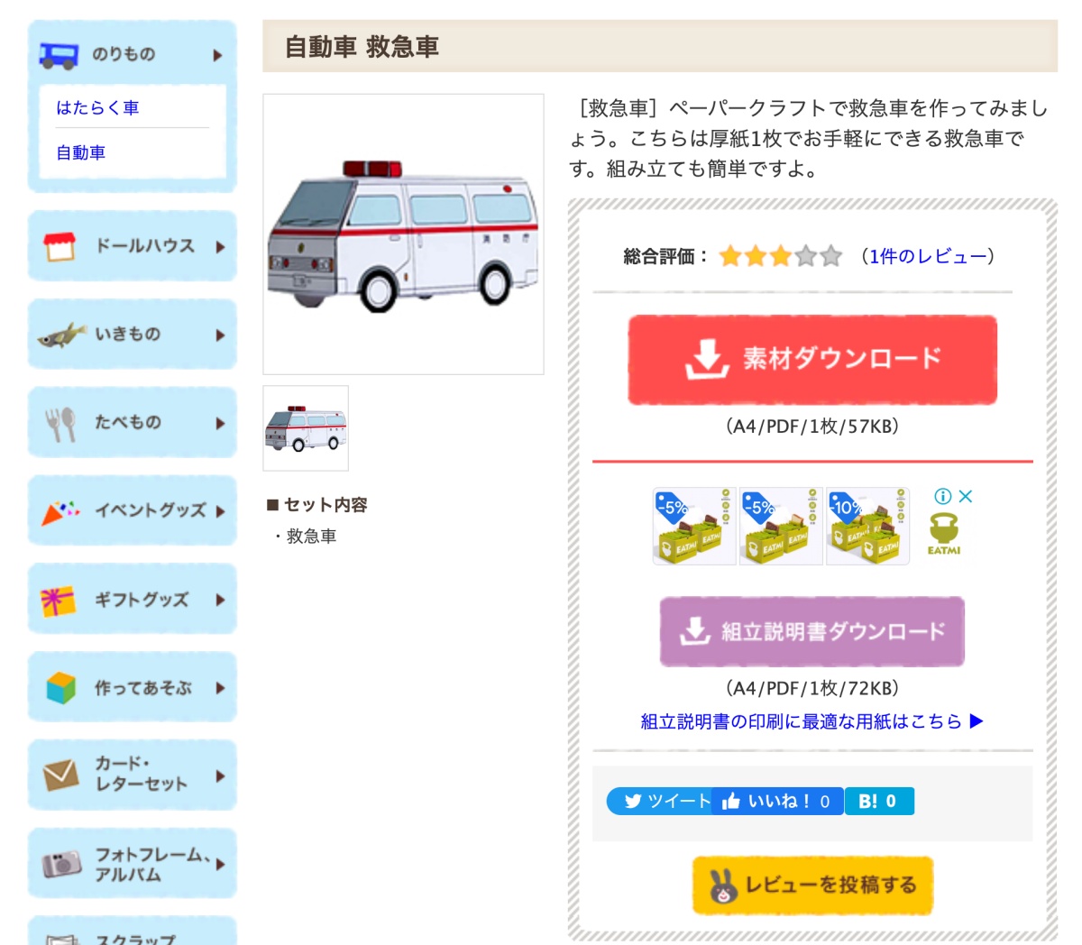 比如在車子類別裡就有找到我兒湯包很愛的救護車,點擊右邊那個紅色大大的圖示,素材什麼的,就可以打開 PDF 來列印囉。