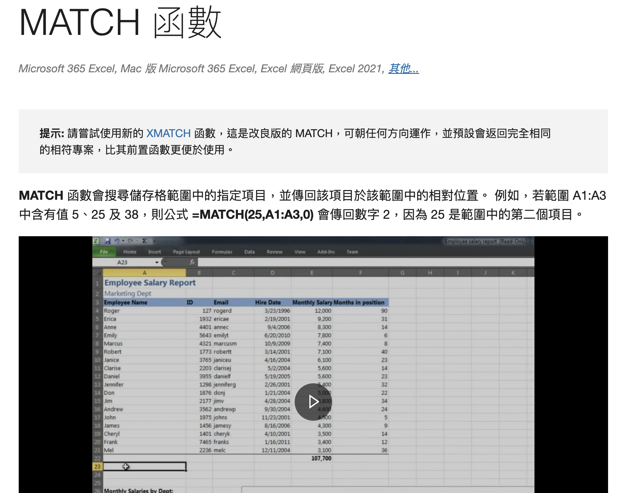 在 Microsoft 網站同樣也有 Excel 函數列表,分門別類的幫你做好清單,如果想要了解哪一個函數,點擊進入同樣都會有範例說明,部份函數還會有影片說明,其實都非常完善,甚至也比很多書籍都教的更清楚。