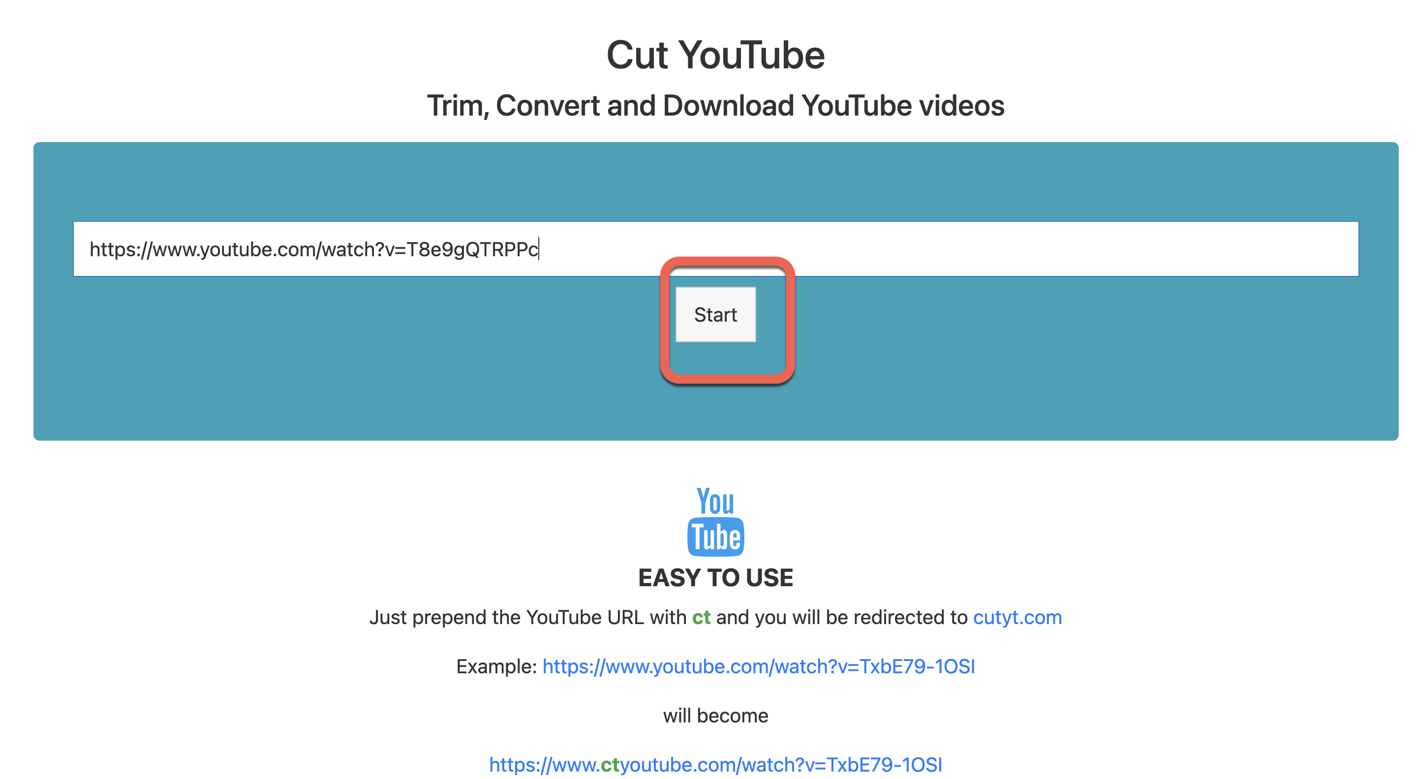 網站:https://www.cutyt.com/貼上你要轉檔的 YouTube 影片網址,按下 Start。