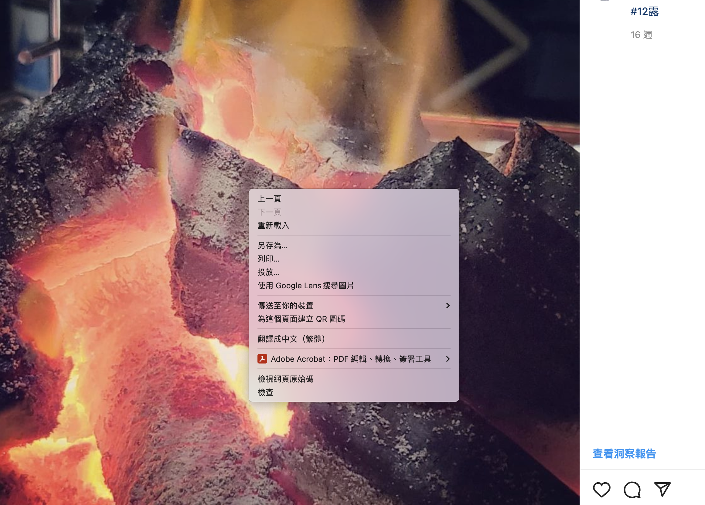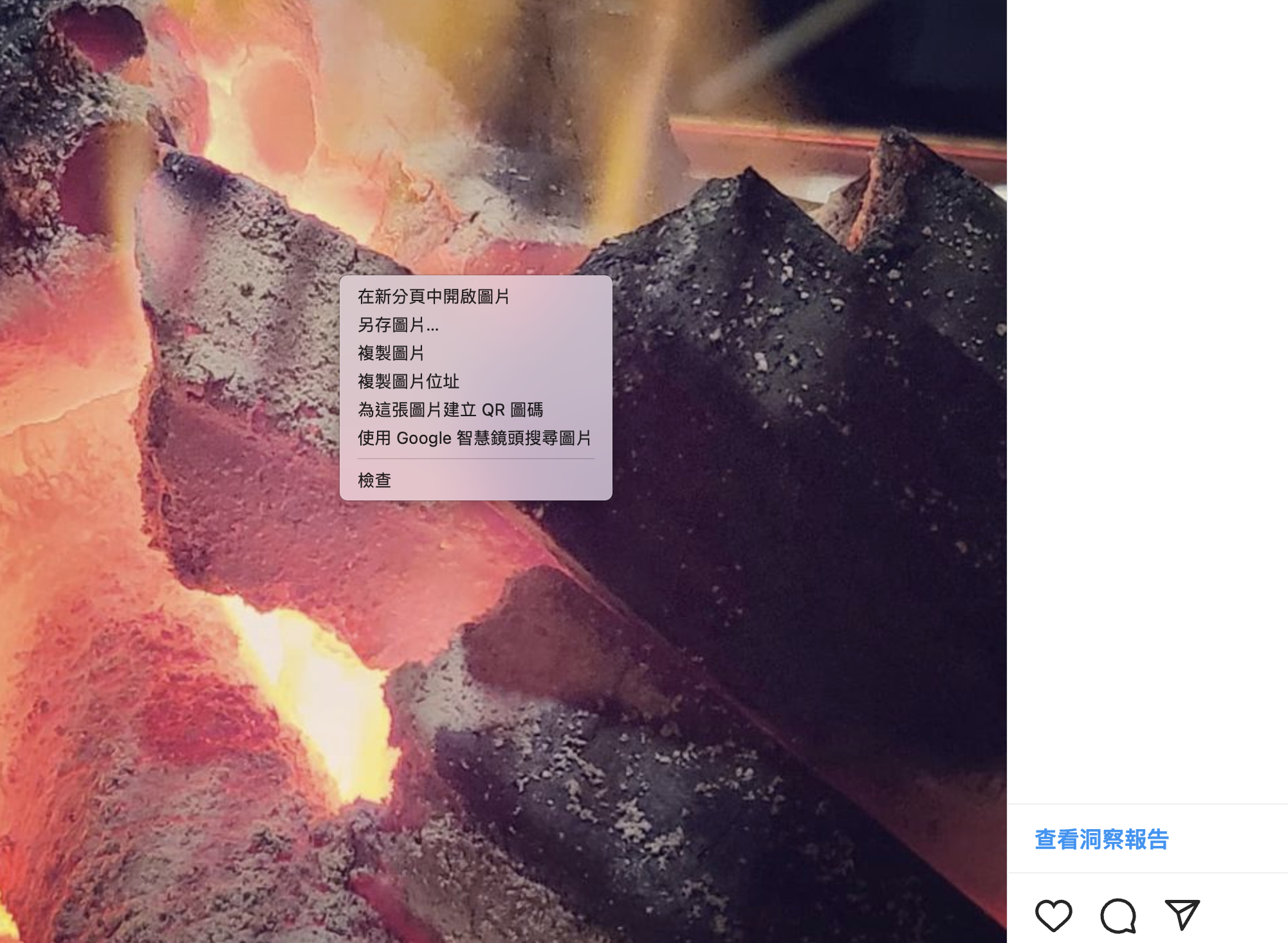 除了網頁不能右鍵的之外,你也可以去試看看 IG,原本在照片上右鍵會是這樣的選單,而影片是完全無法按右鍵。