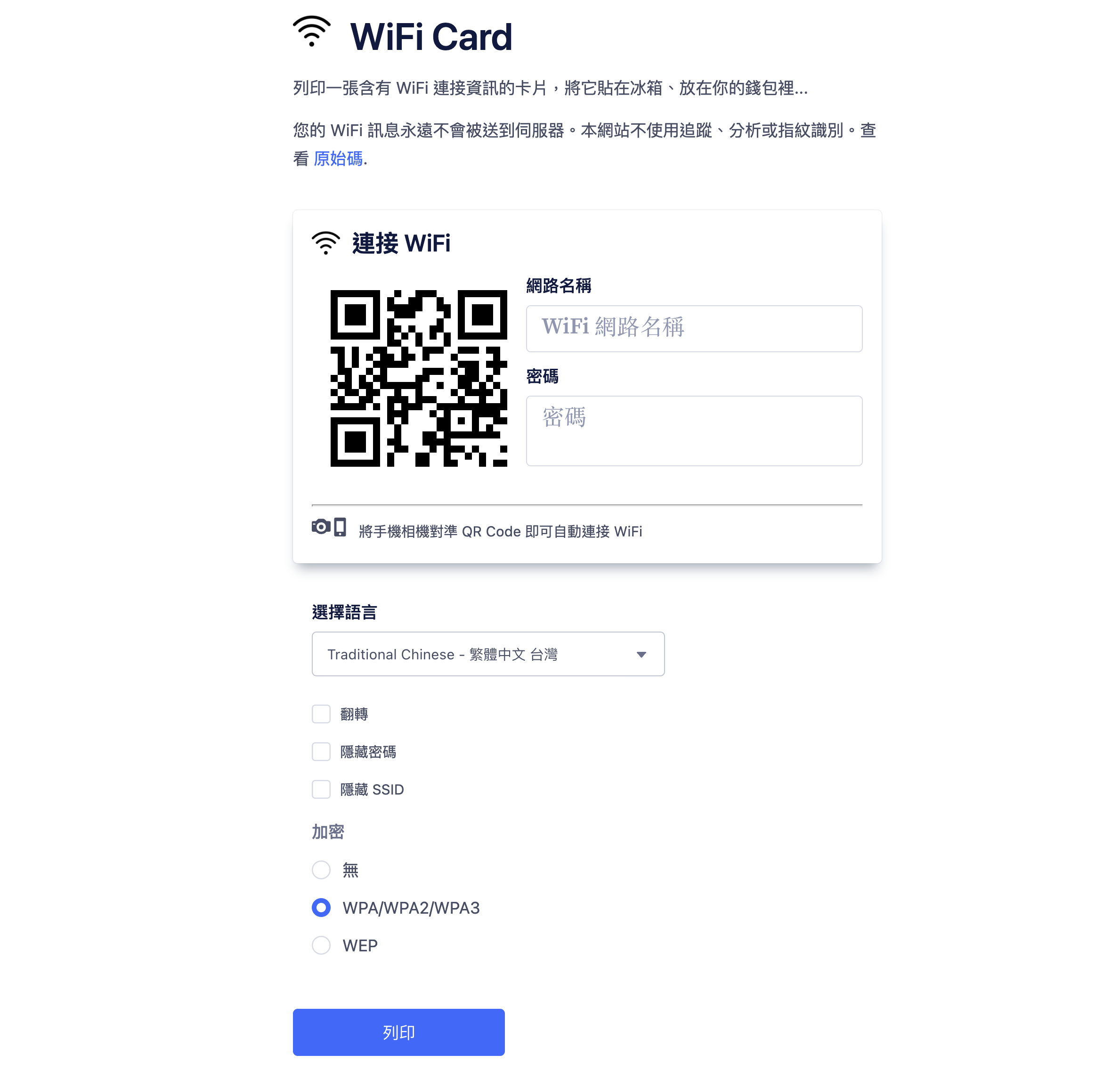 WiFi Card - 將 Wi-Fi 連線資訊製作成 QR Code