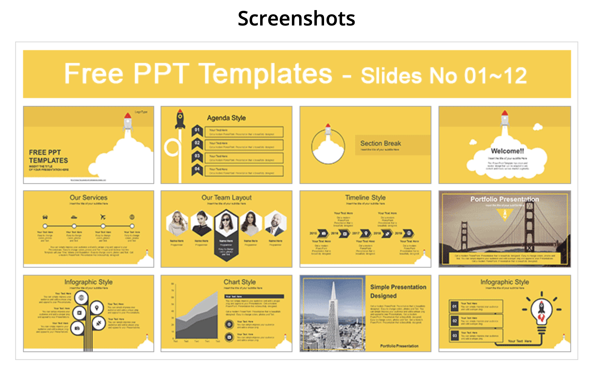 每個簡報點擊進去都可以查看更多截圖,讓你知道這範本裡還有什麼樣的畫面,確認好是否適合你使用再下載,就不用一個個花時間測試。