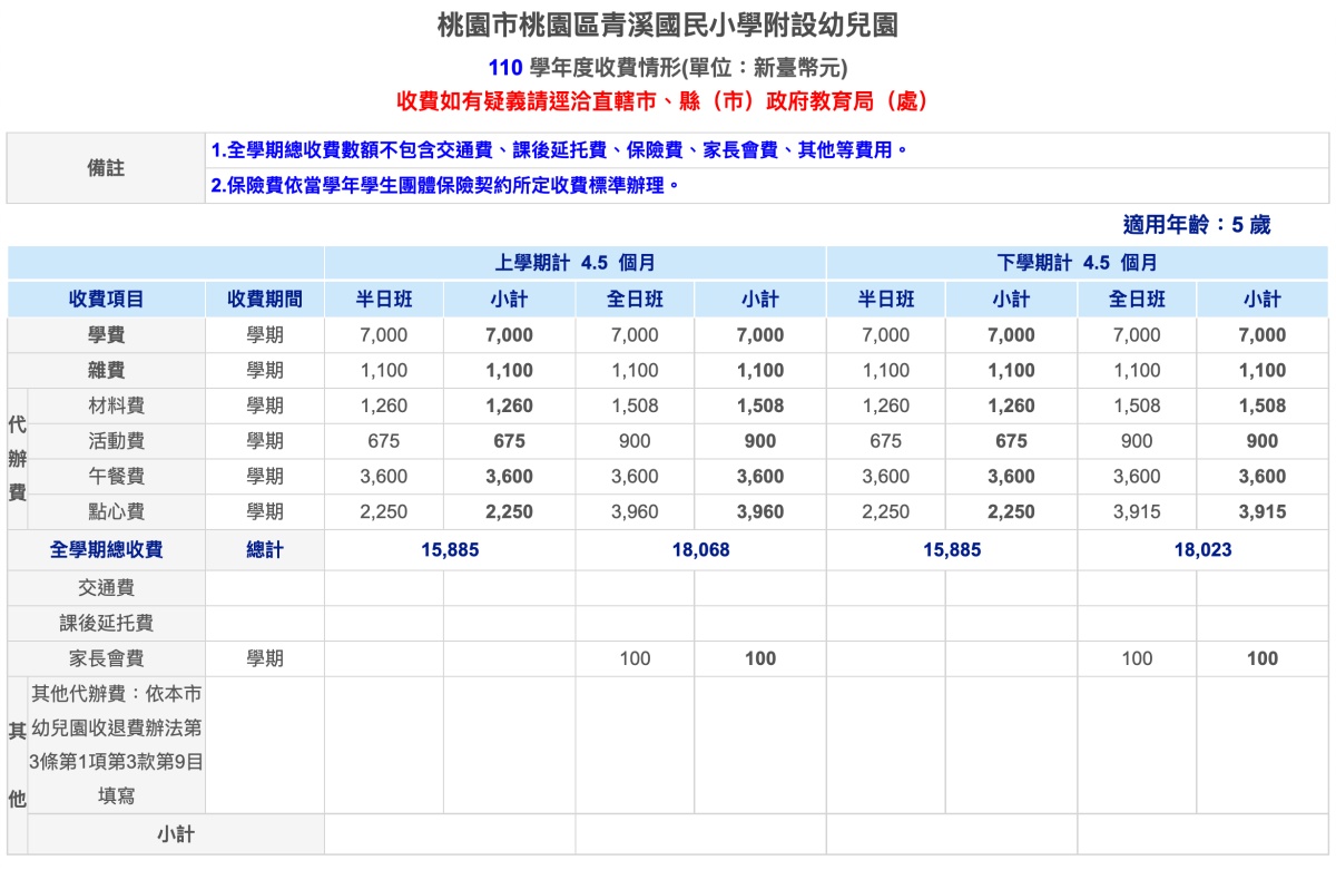 其中收費明細,可以查看每個班別的,像是大中小班分別的價格等,項目也會列的很細。