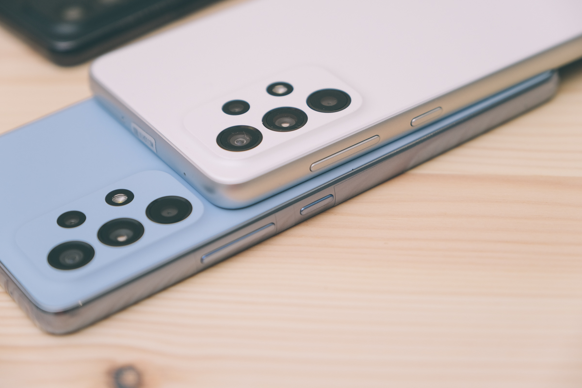 Galaxy A33 5G 及 A53 5G 就外觀來看,很難分別出差異在哪裡,主要可以直接看側邊,A53 5G 的側邊邊框是亮面的,而 A33 5G 是霧面的。