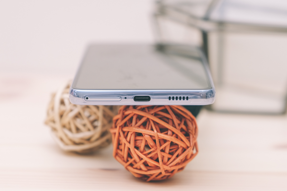 下方為 SIM 卡槽(含 Micro SD)、USB-C 連接充電埠(支援 25W 超快速充電)、揚聲器。