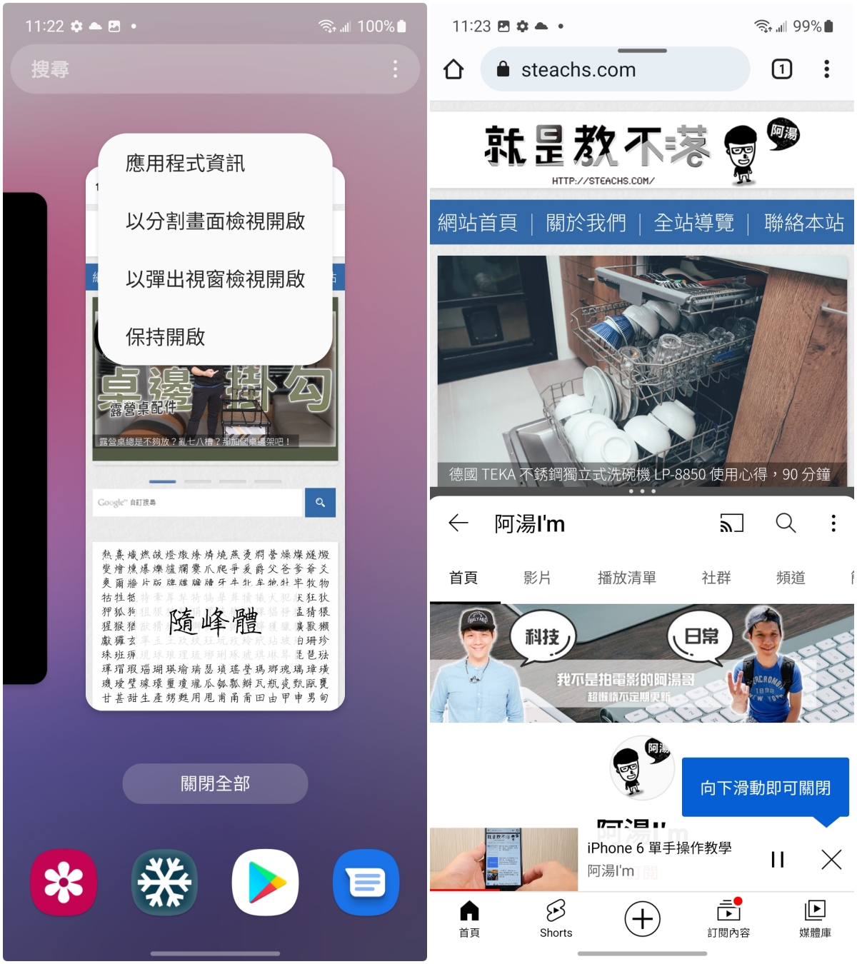 第二種是以「彈出視窗」的方式呈現,看起來會像是在使用電腦一樣,視窗直接浮動可調整,而不使用時也可以將視窗縮入氣泡球裡,阿湯自己平常是都用這樣的方式來同時開啟多個 APP 切換,我覺得超好用。