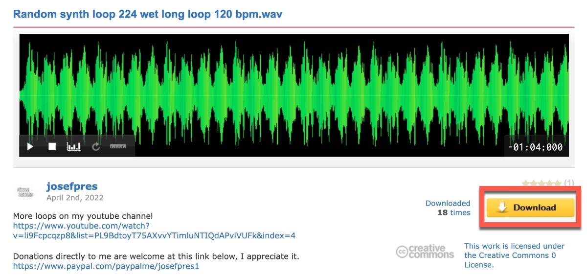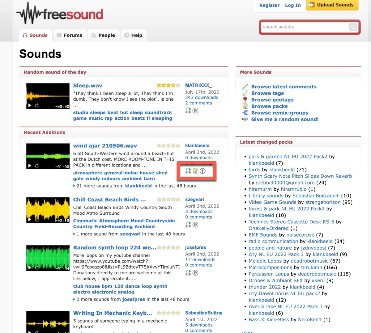 網站:https://freesound.org/browse/進入網站後,可以用搜尋的、分類、標籤等方式篩選,每個音樂的後方都有標明授權方式,下載前可以先看一下,避免要商用但下載到僅個人的。