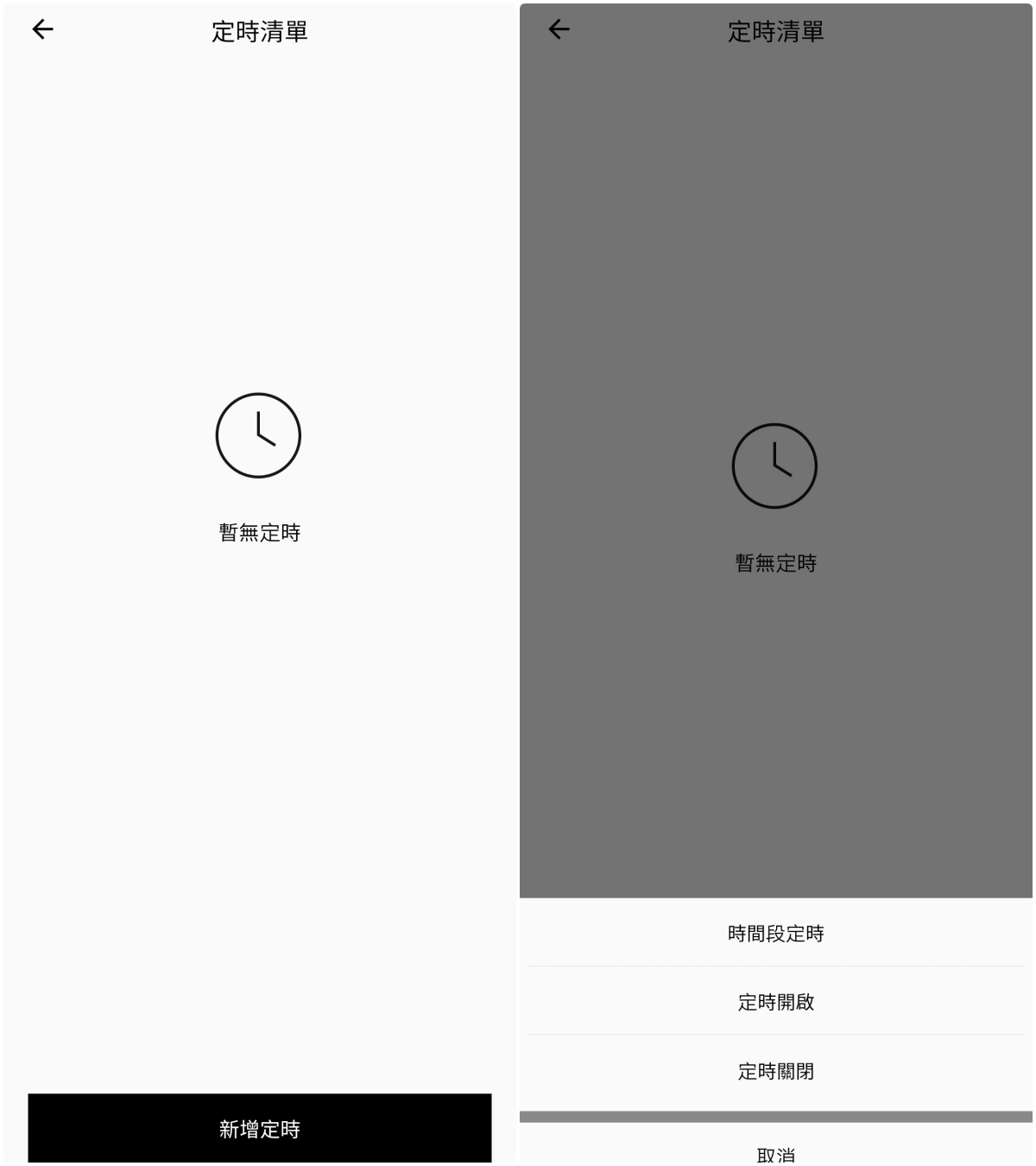透過面板可以做簡易的定時,如果想要更細微的設定,像是分段等,可以透過 APP 做更詳細的設定。