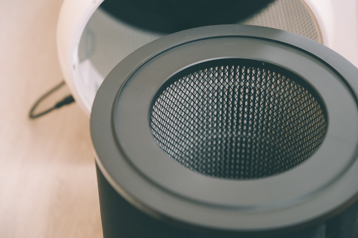 採用的是 TRUE HEPA 濾網(H13 等級)+ 活性炭層,可以有效的過濾小至 PM0.03 超細微的懸浮粒子以及異味,濾網也相當的小一顆,平均使用年限為一年左右更換一次。