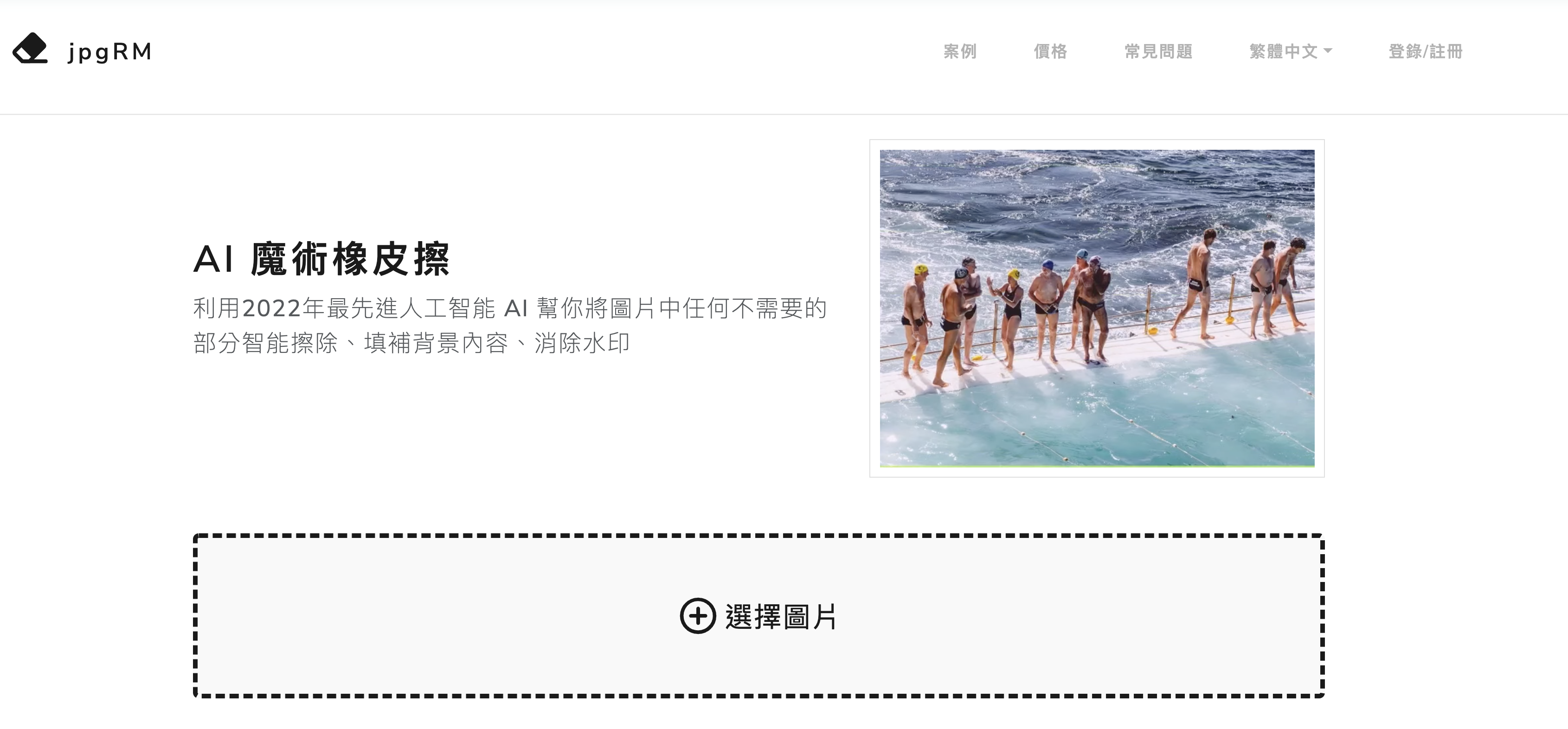 網站:https://jpgrm.com/tw進入網站後直接將要修的圖片拖曳進來。