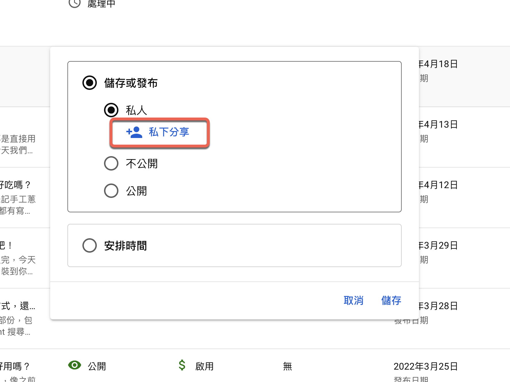 大家可能沒注意過,在選擇私人時,下方還會有一個「私下分享」。
