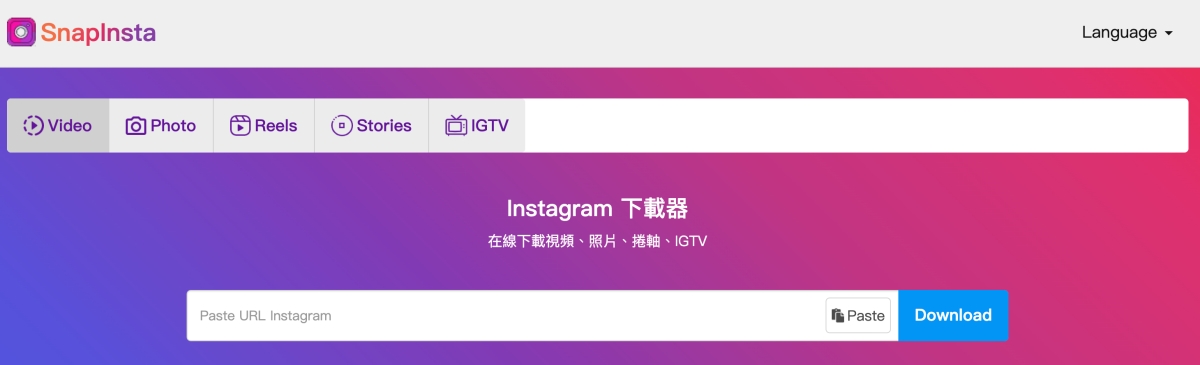 網站:https://snapinsta.app/tw-tw進入網站後,直接貼上要下載的 IG 照片或影片連結,如果是多張照片或綜合的影音、照片都可以,貼上後按下 Download 通通都會辨識出來。