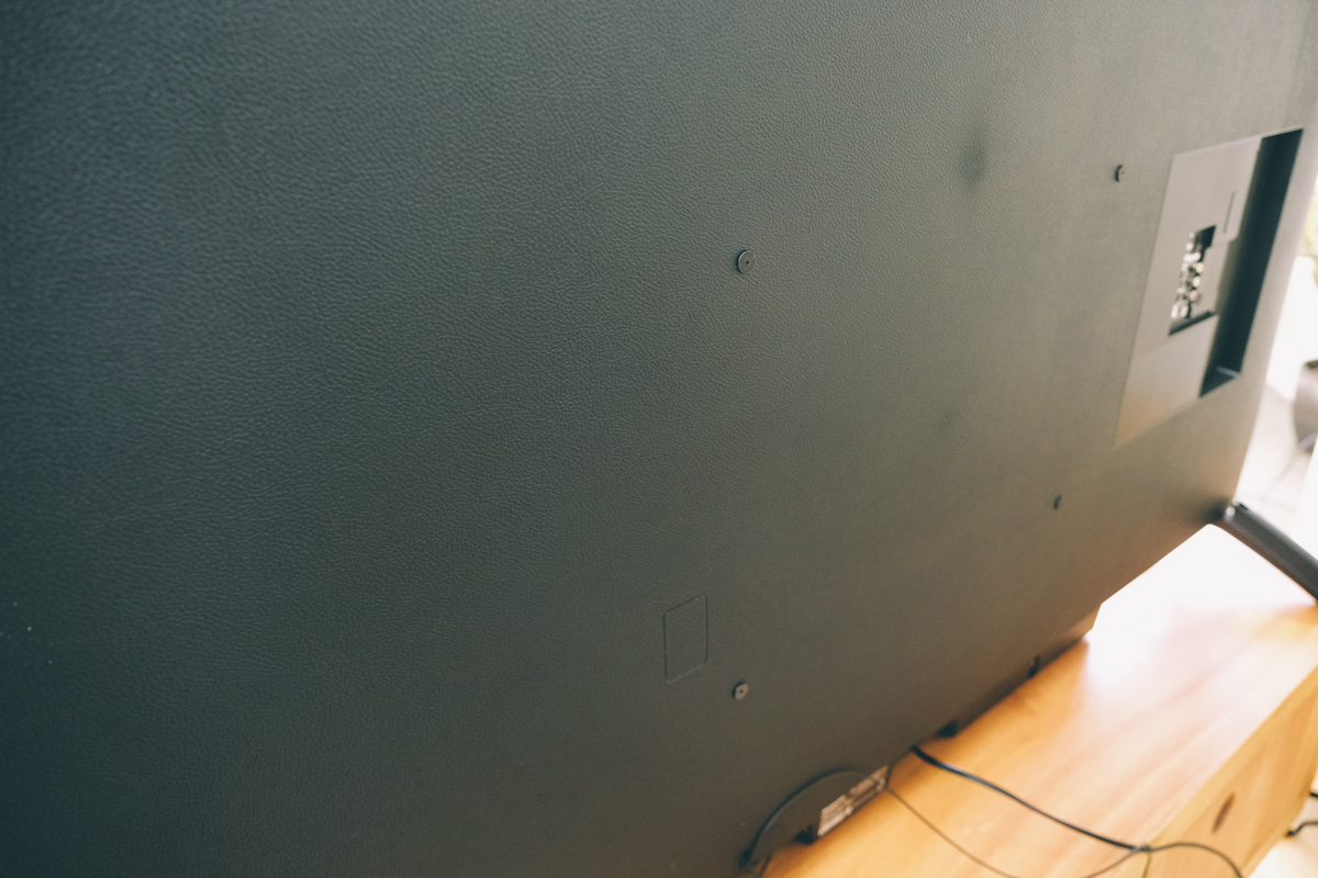 支援壁掛安裝,後面有四顆螺絲鎖孔,是用來將電視鎖上壁掛架使用,阿湯自己目前家中也是採用壁掛的方式,可以節省不少空間。