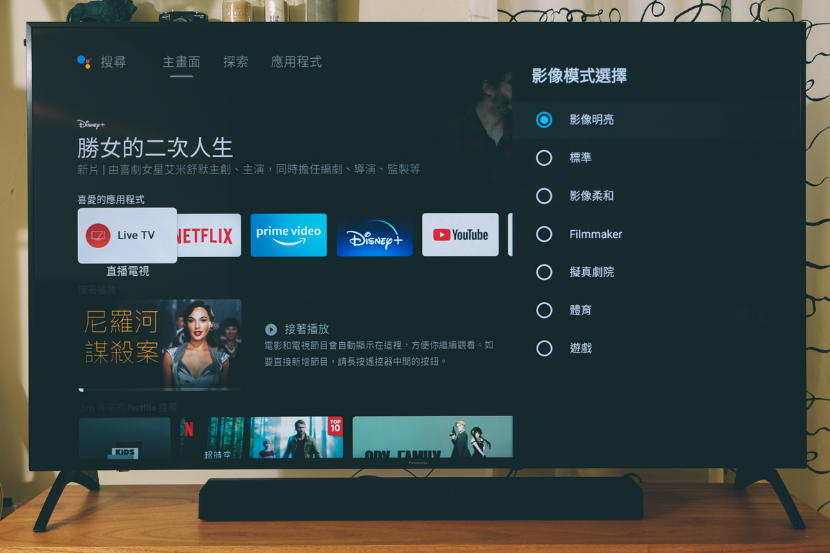 可以選擇的影像模式包括有明亮、標準、柔和、Filmmaker、劇院、體育及遊戲。