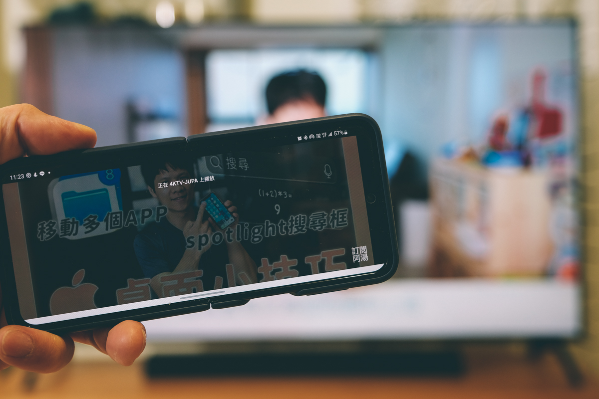 內建 Chromecast 可以直接將手機上的影像選擇在電視上播放,或者直接鏡像手機的畫面到電視上,相當的方便,是阿湯最愛用的功能之一,像我跟顆老大,就很常會透過電視互相分享當天運動的成果影像,或是最近剪了什麼影片,透過 Chromecast 直接在電視上播放。