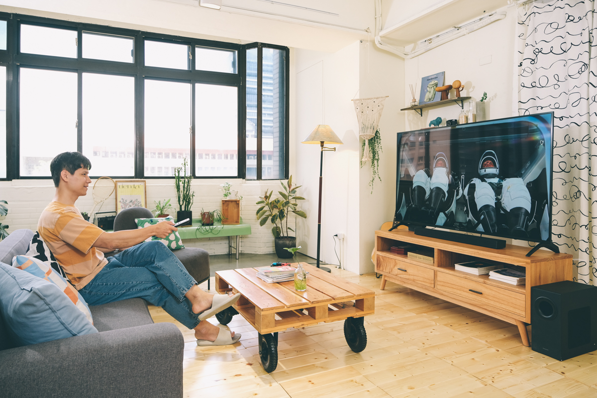至於電視買來要用什麼數位媒體來收看也不用想,買來就已經預載 Android TV™ 11.0 系統,變成一個超大的 Android 平板,再加上內建 Chromecast,隨時也能直接過手機播放或是鏡像內容到電視上。