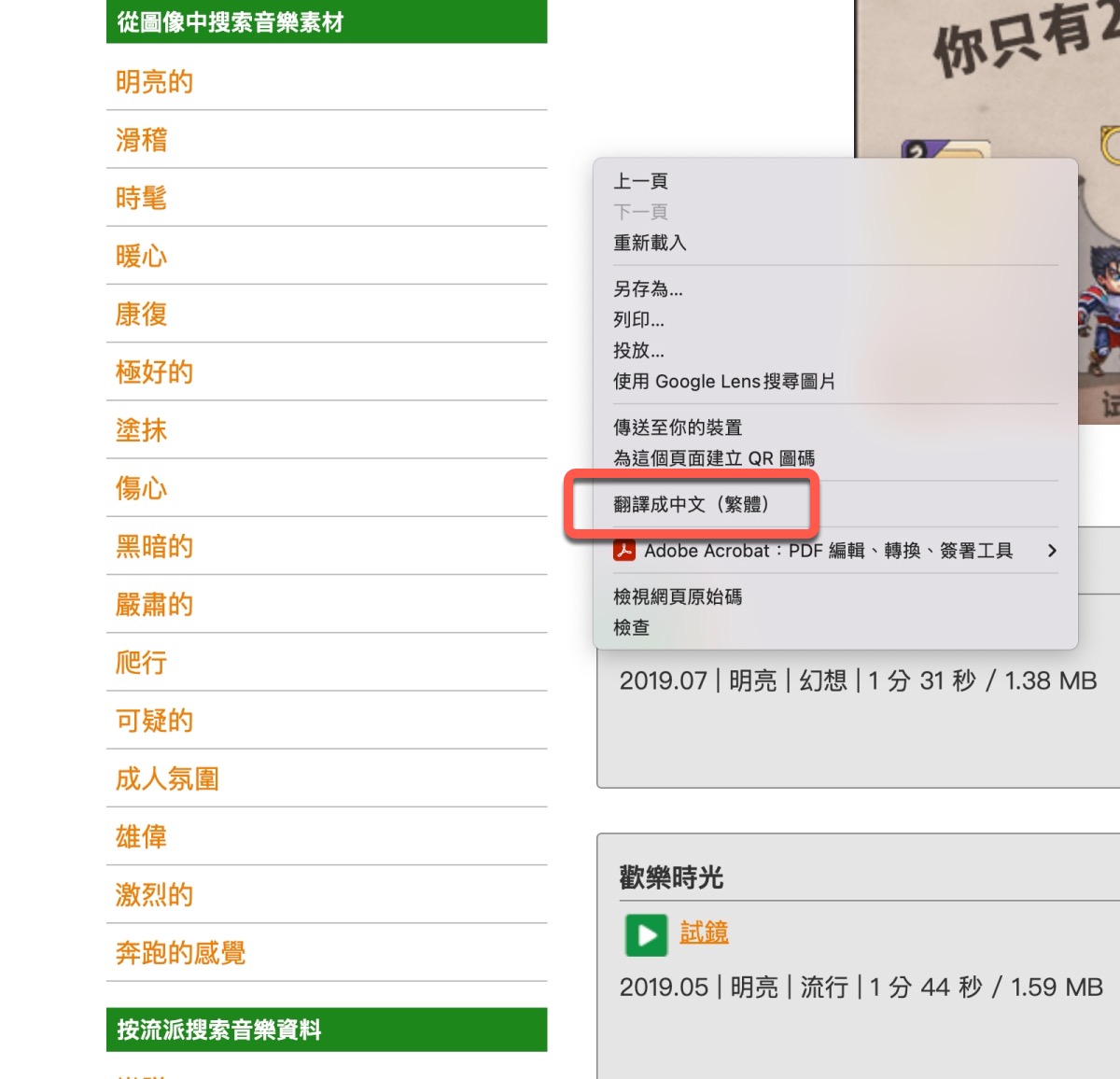 網站的日文如果看不懂,就多多利用瀏覽器的翻譯功能,像 Chrome 就可以直接右鍵翻譯,大概都可以看懂個八成,裡面目前原創超過 500 首音樂,全部都是站長自創且免費公開分享,大家如果有使用到也可以多推薦給朋友們。