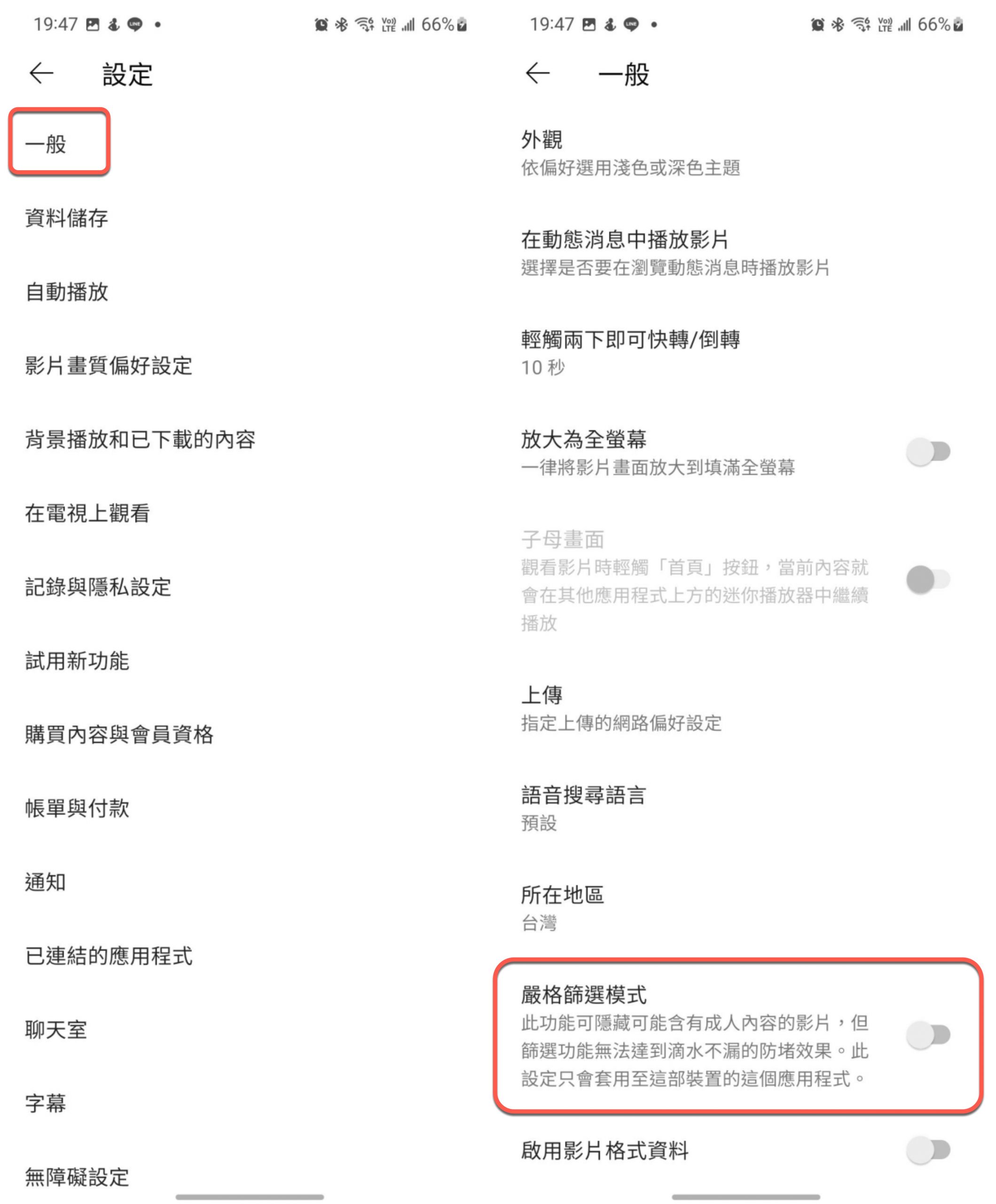 再進入一般後,就可以找到嚴格篩選模式囉,把他打開吧。