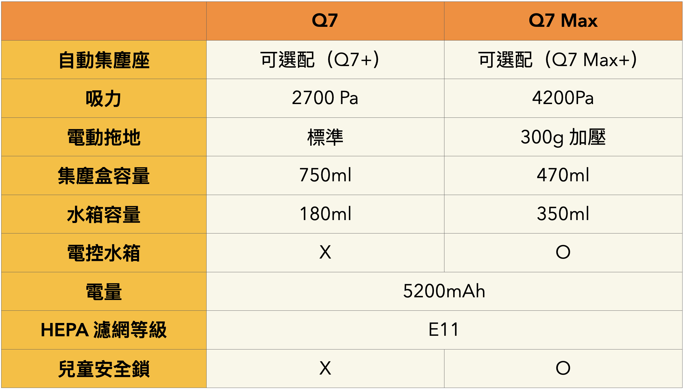 在往下看之前,先提供大家 Q7+ 及 Q7 Max+ 二款的規格差異表,方便大家比對,就不用再看半天,而 Q7 及 Q7 Max 都可以自由選擇是否要加購自動集塵座,當然都要買了阿湯還是強力推薦一次買好買滿,自動集塵座最久可以 60 天再換一次集塵袋,真的很方便啊。 其它最大差異就是在吸力、電動加壓拖地、電控水箱以及兒童安全鎖,功能上二款基本上是沒有什麼差異的,當然一分錢還是一分貨,往下阿湯就更詳細的來分享 Q7+ 與 Q7 Max+ 的差異,大家就邊對照著這規格比較表邊往下看吧。