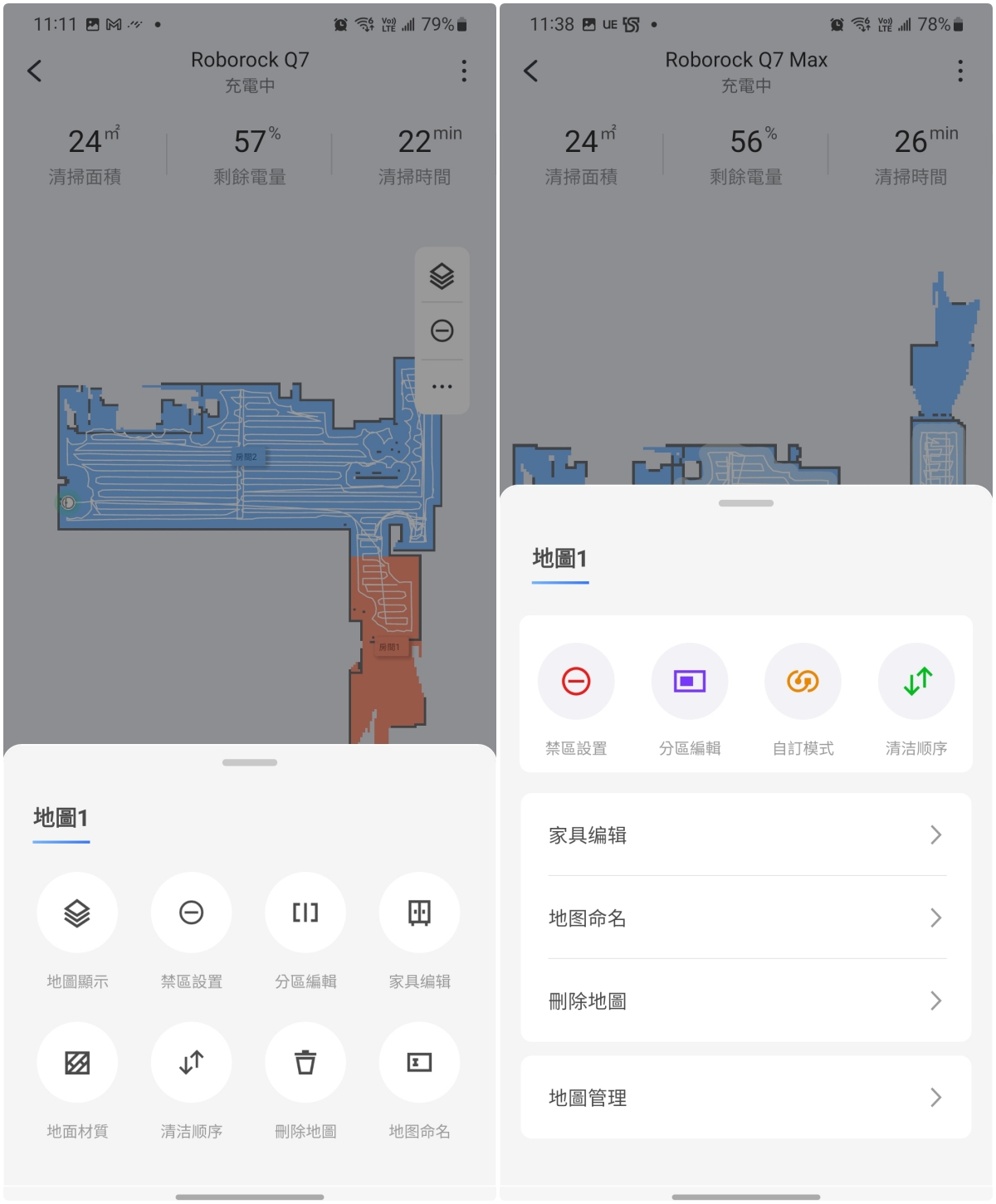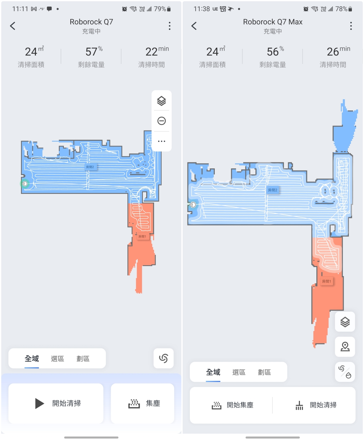 阿湯也依序的讓 Q7 及 Q7 Max 出發清掃,看看清潔的狀況。