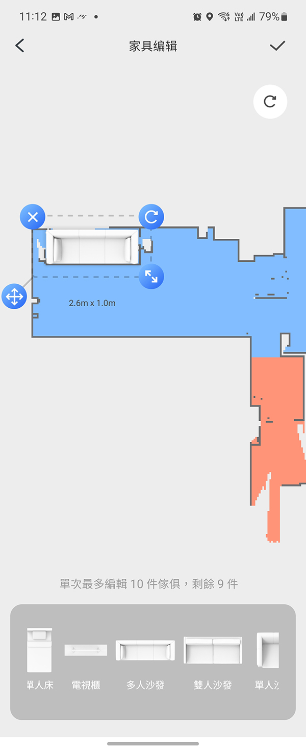 比較特別的是可以自行在地圖上編輯家具,這會有助於掃地機在行走時更好的去辨識家具區域。