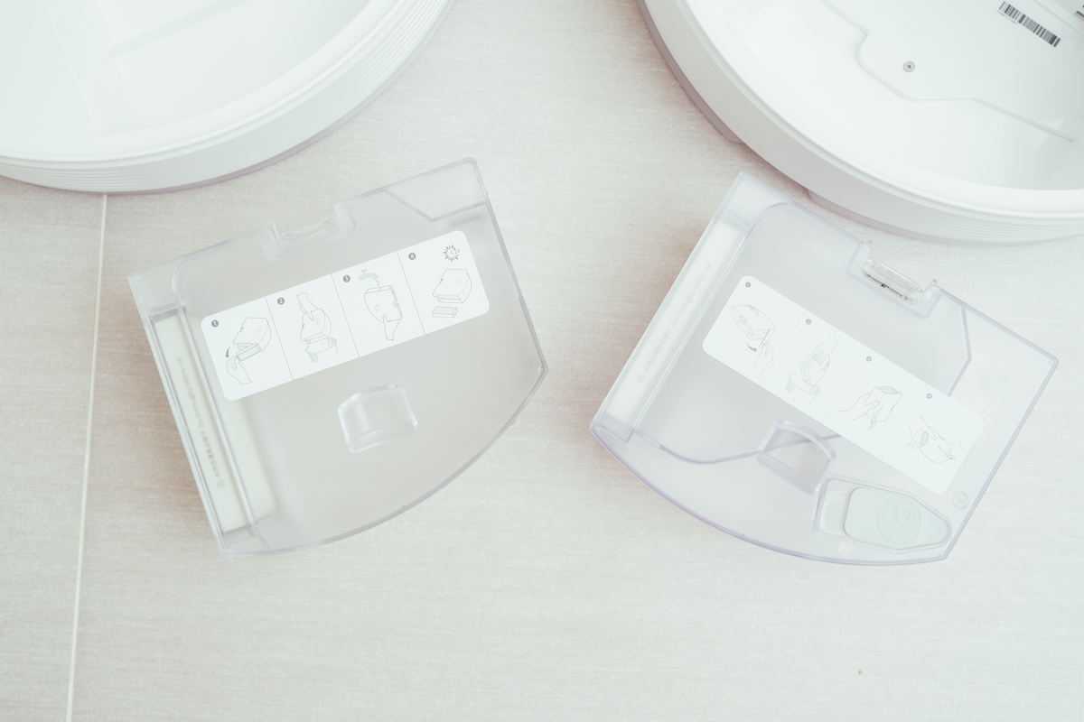 主要原因是,Q7 的集塵盒,單純就是集塵盒,而 Q7 Max+ 結合了水箱,將部份的空間切分成 350ml 容量的水箱(並支援電控出水),才會讓這二款在集塵盒及水箱的容量有所不同,因為設計是不同的哦,Q7 的水箱是與拖布支架結合在一起,後面會再拍給大家看。