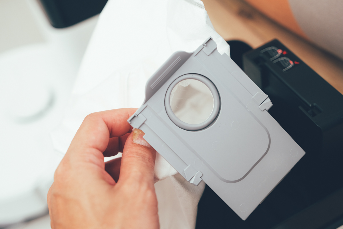 自動集塵座上方打開就可以看到集塵袋,這個集塵袋的容量足足有 2.5L,依照你家的使用狀況,大約最久可以使用 60 天再更換,如果家裡真的蠻乾淨的,我想用超過 60 天以上也是有可能的。