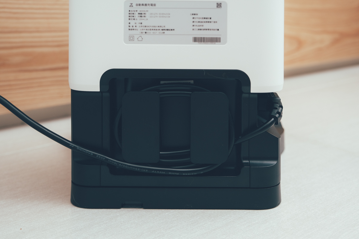 自動集塵座後方也貼心的設計有二圈收線環,可以讓你的電線收的更加俐落整齊,看到這裡應該覺得自動集塵座很值得買吧,除了 60 天再倒一次垃圾外,其實每次都自動清空集塵盒,也可以延長濾網要清洗的時間,減少堵塞,也更能維持最佳吸力進行運作,我覺得只有利無弊啊。