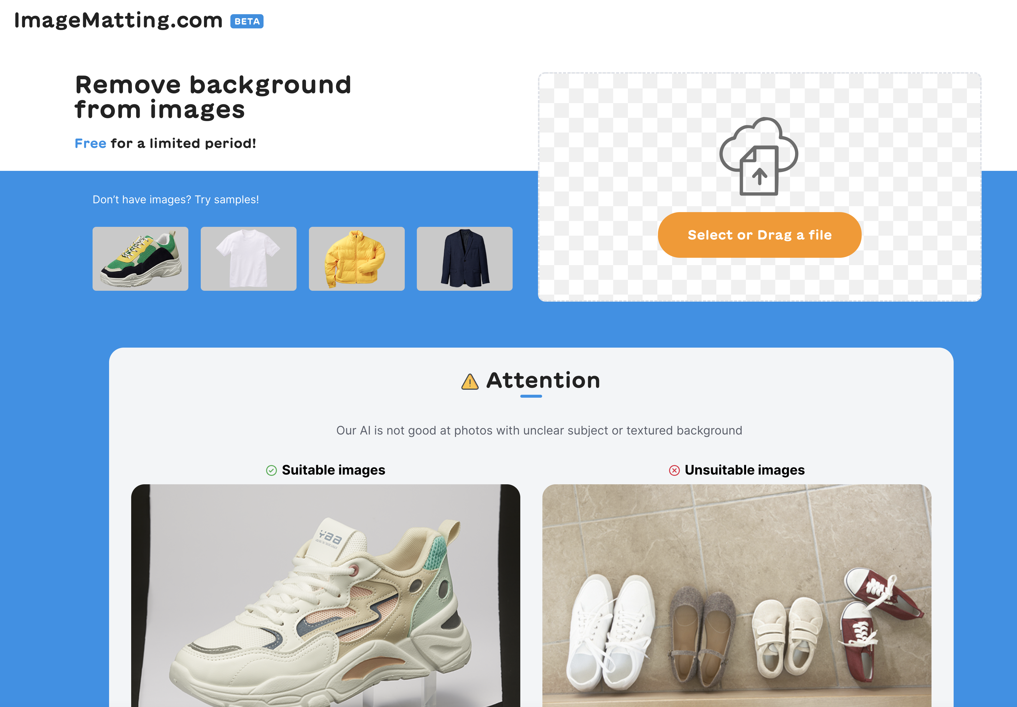 網站:https://imagematting.com/進入網站後,直接將要去背的圖片拖曳進去,最大可以輸出 2000px 解析度的圖片。