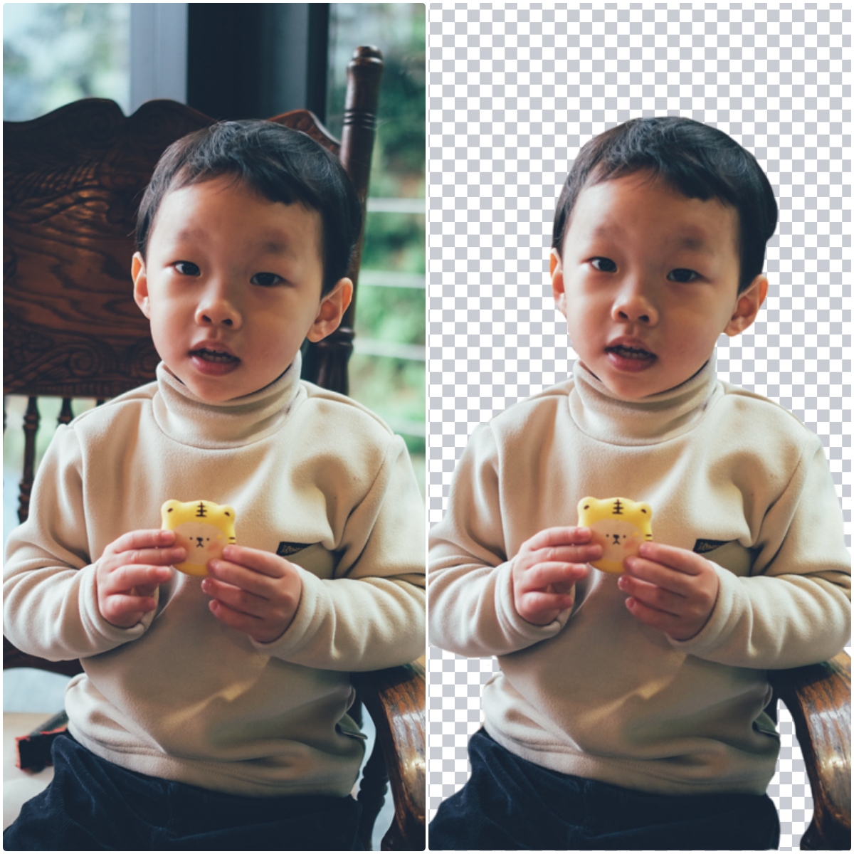 給大家看一下去背的前後差異,基本上我覺得算去的不錯了,這背景的椅子顏色都是深色一樣可以分辨出差異,就差了手下方的椅子沒去到,但還行,算是去的很好了。