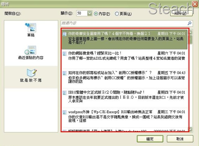 點擊你的部落格,就會開始擷取你網站的文章囉,上面有個顯示,可以選擇要擷取最新幾篇文章