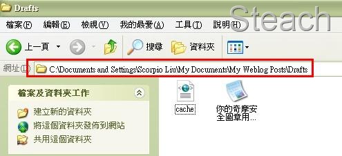 當你按下儲存草稿至本機時,你的文章檔案就可以在我的文件夾→My Weblog PostsDrafts 裡面找到哦再將他複製到你要備份的地方就可以囉