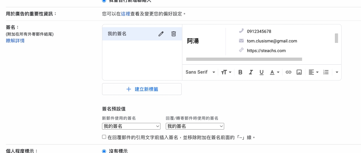 接下來就可以到你的 Email 設定裡在簽名檔貼上剛剛做好的簽名檔,然後儲存就搞定囉。
