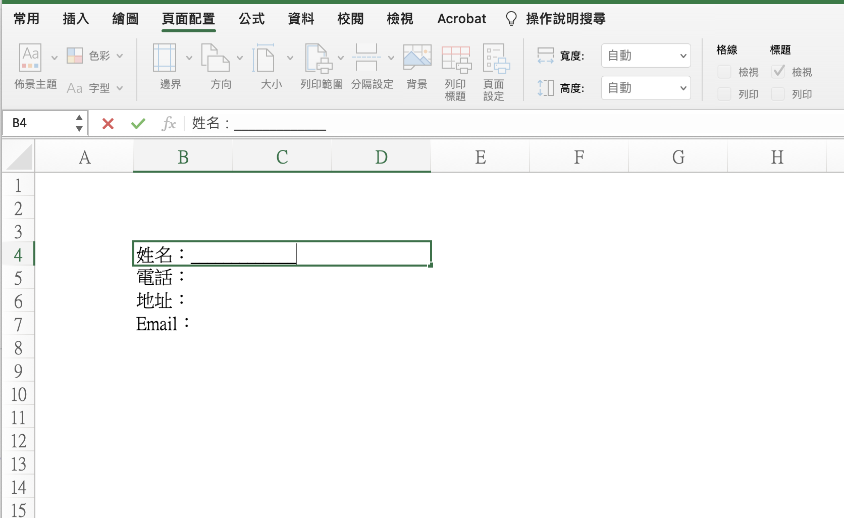 Excel 小技巧,如何在表格自動填入下底線?
