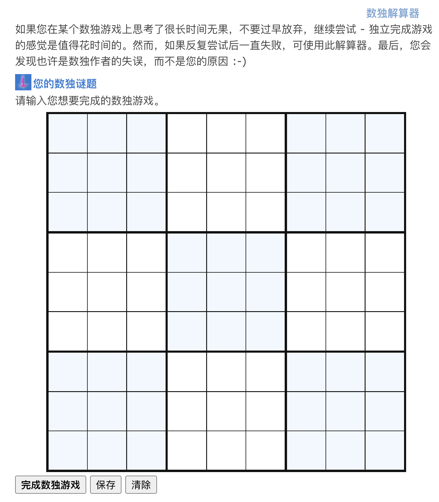 網站:http://zh.sudoku.menu/info/solver.html進入網站後,就會有一個空白的數獨表給你填寫,將你正在解答的數獨內容填上去。