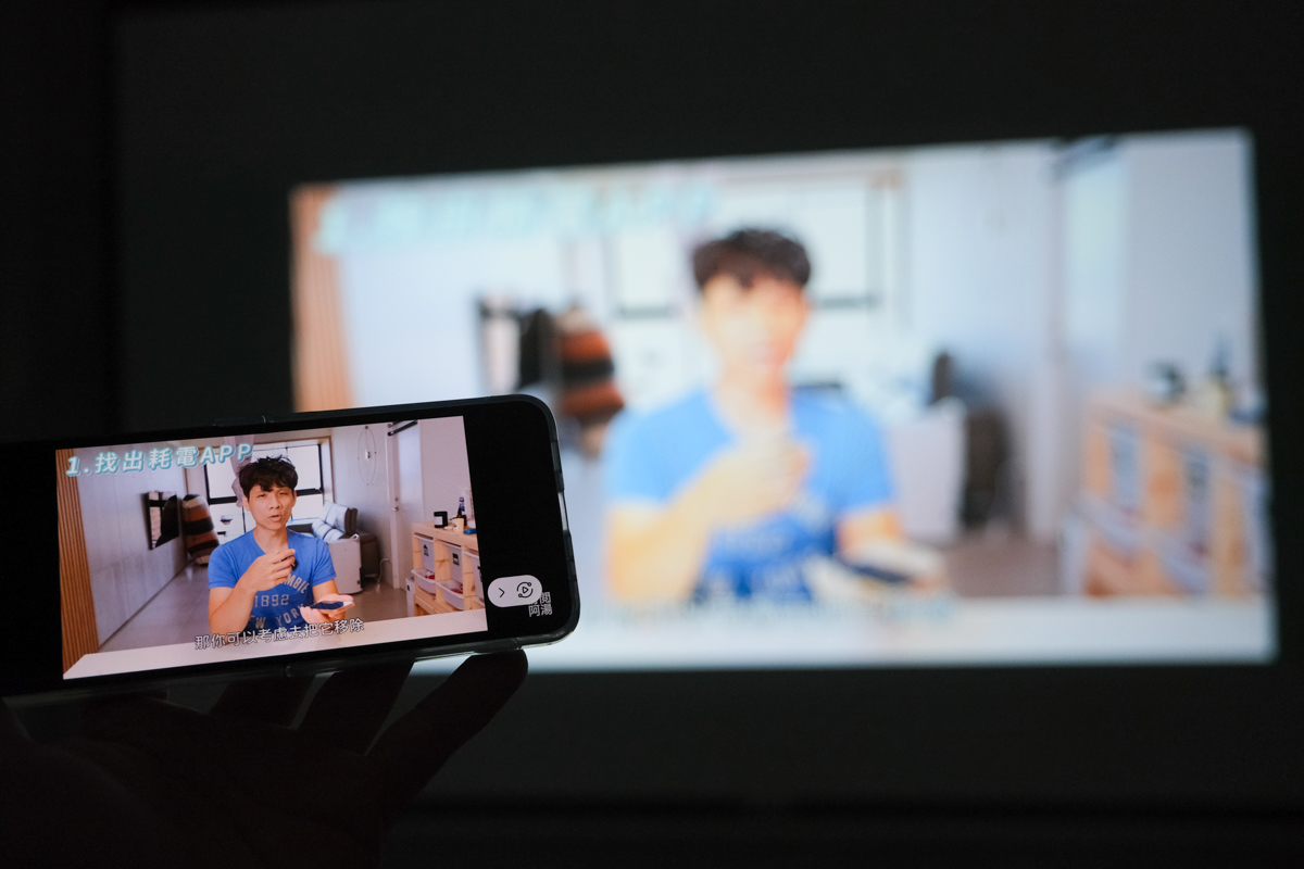 透過投影機看 100 吋的大畫面真的是蠻爽的,雖然投影機的畫質怎樣都比不上電視來的細緻,不過就跟你去電影院看影片一樣,畫面大,眼睛也很專注在暗房中的亮點之中,因此也會更加的沉浸在影片的內容裡,我覺得用之前沒想太多,有了投影機後真的是回不去了。