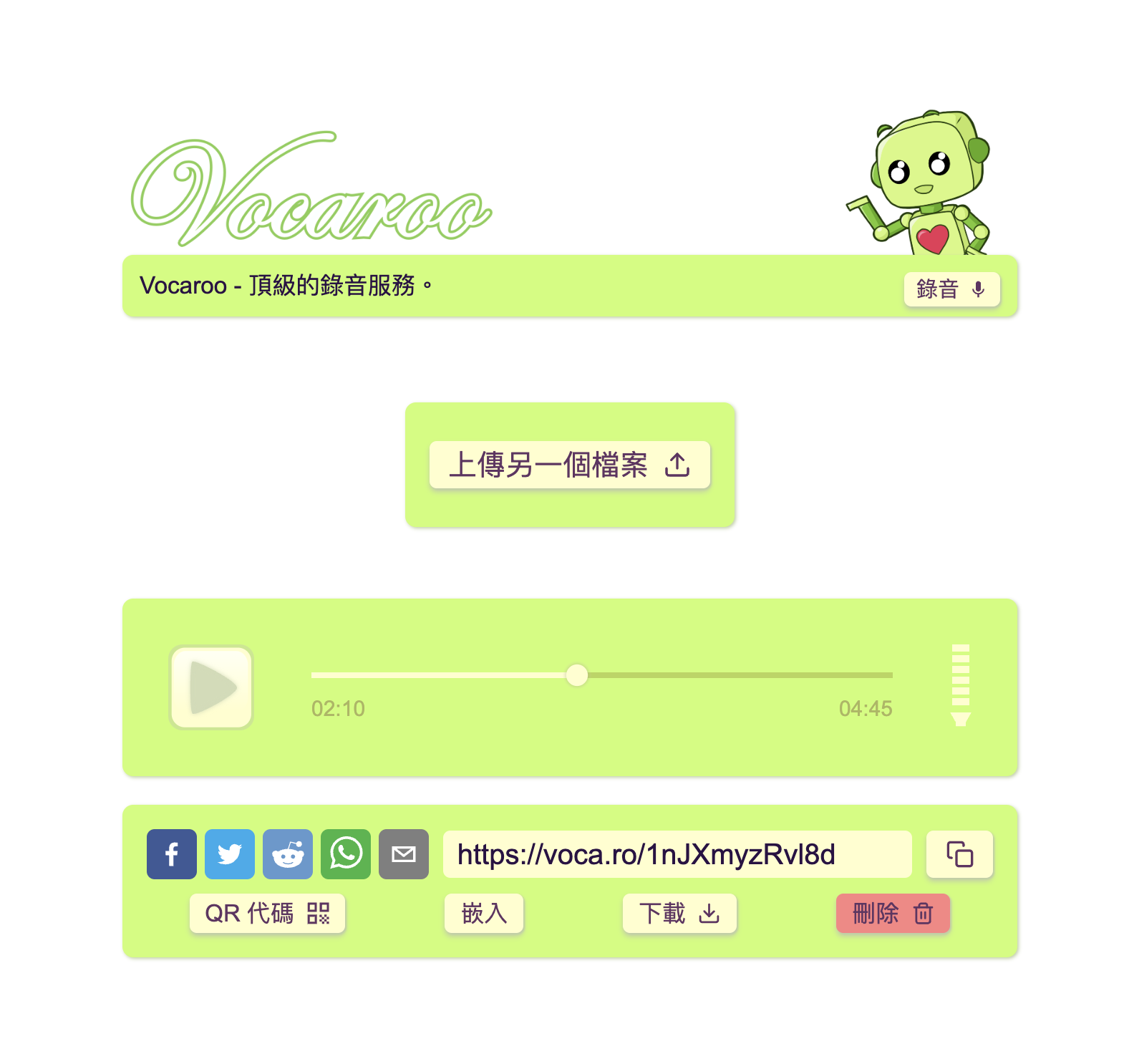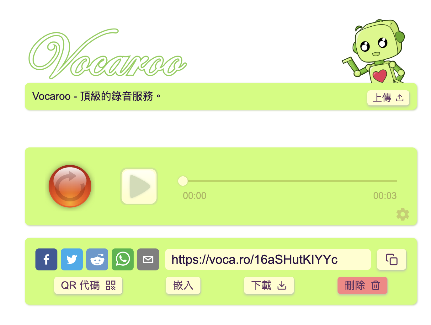 Vocaroo - 線上錄音工具