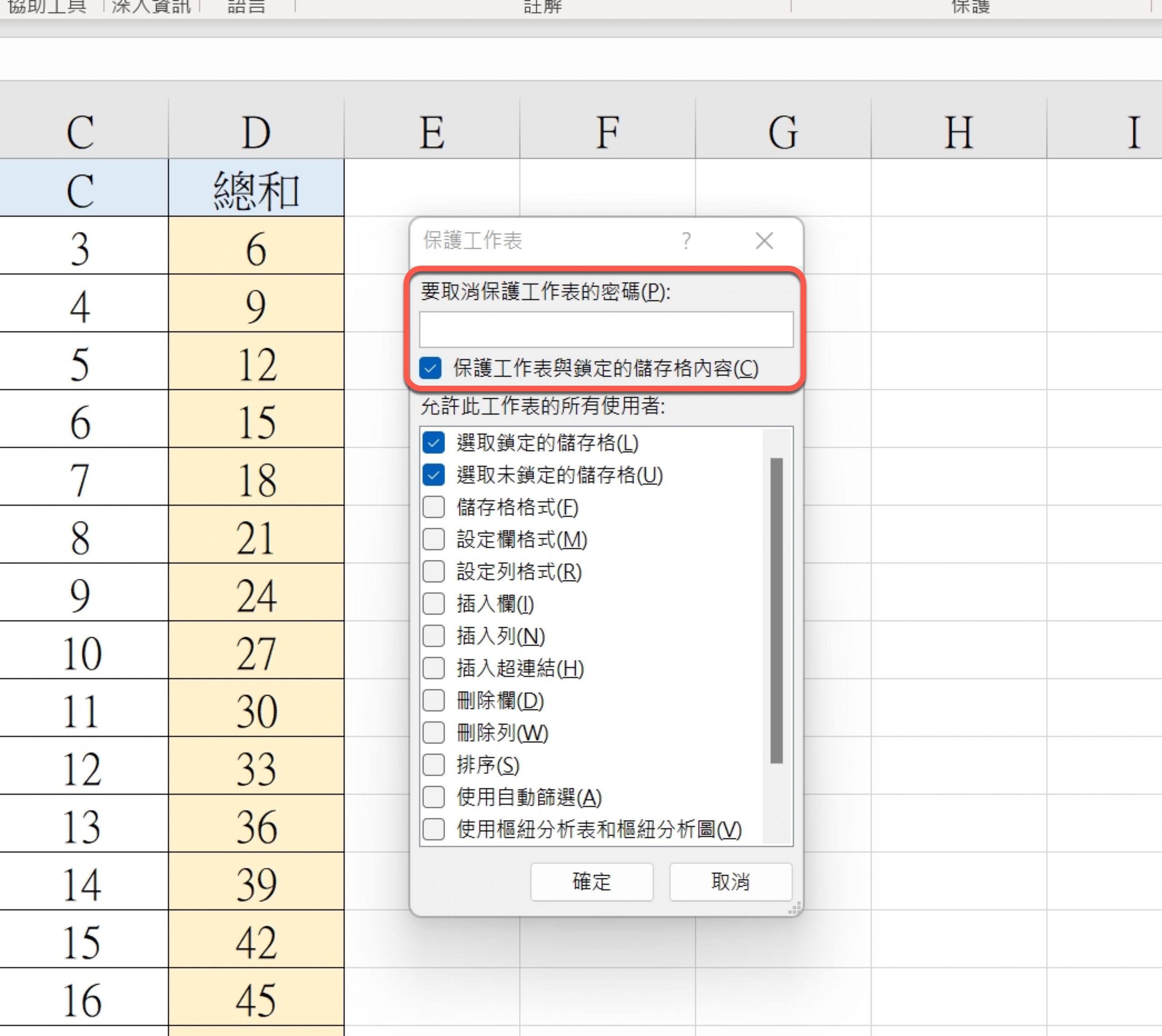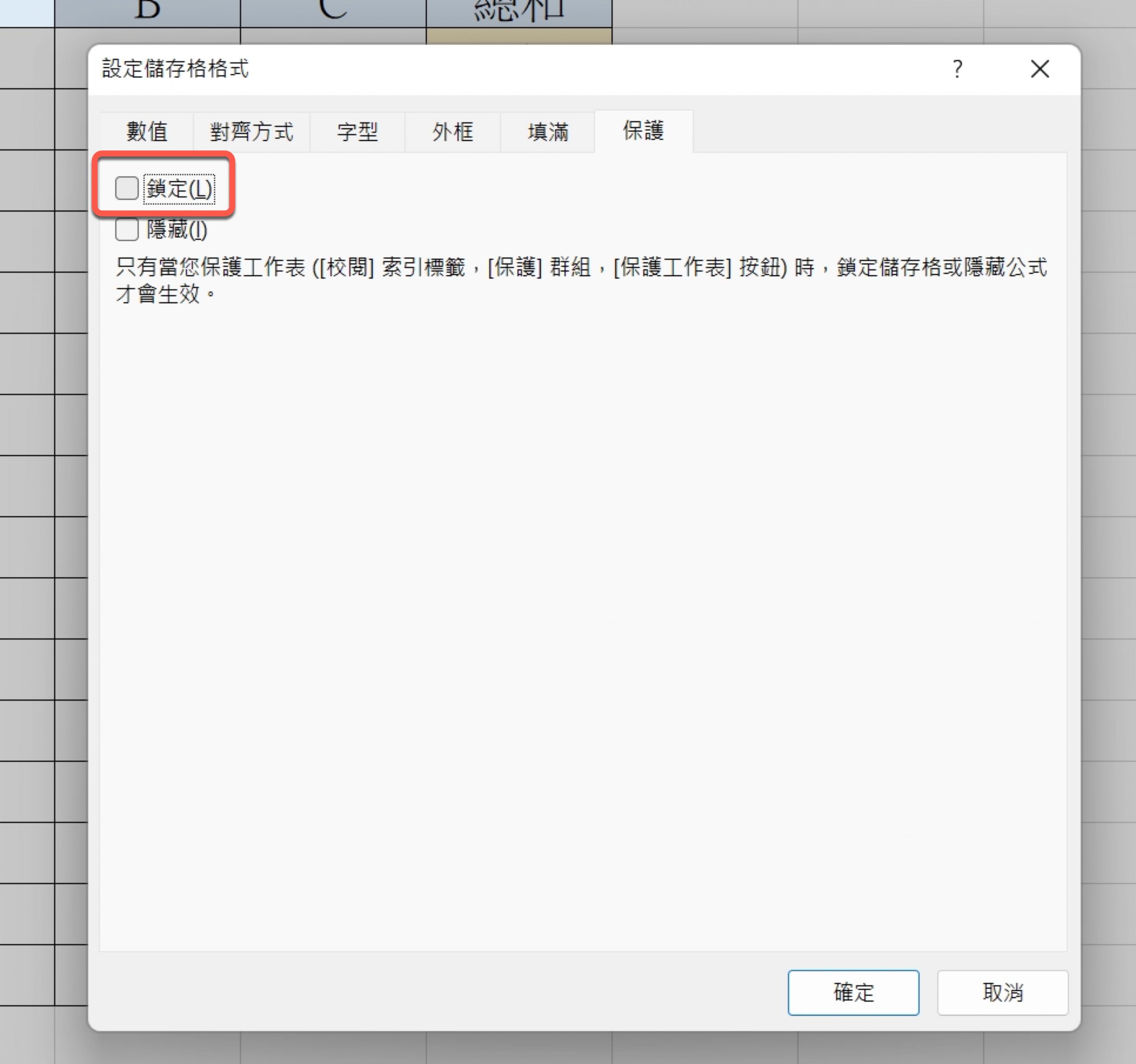 在保護裡,將鎖定、隱藏都勾選起來,按下確定。