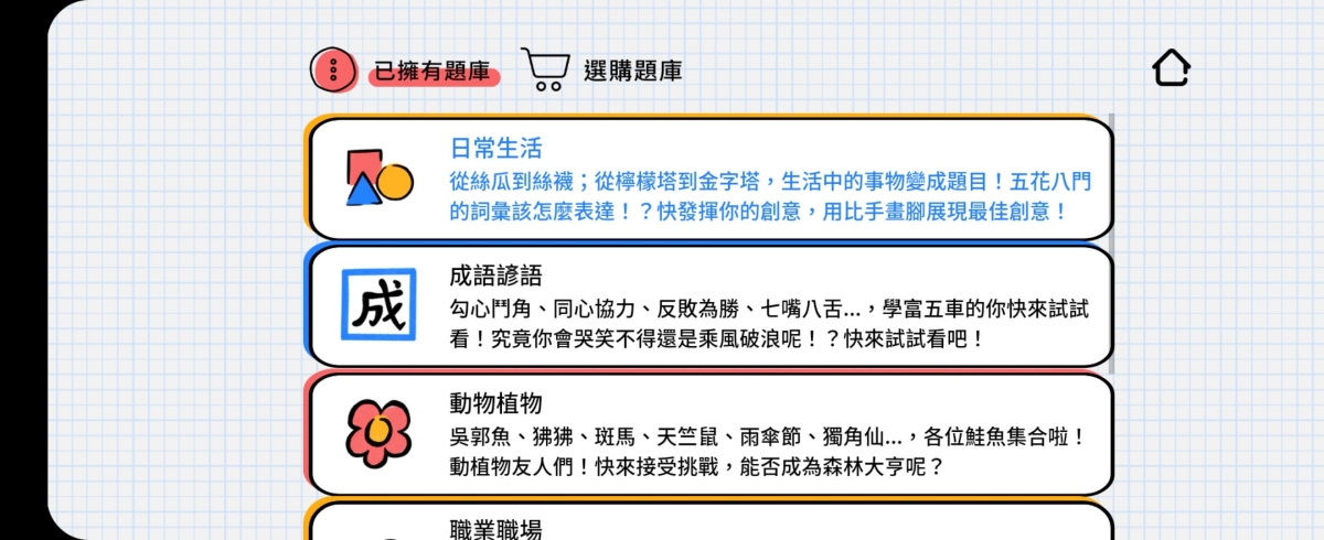 進入更多題庫可以查看每個主題大概是哪些內容,或是可以再選購題庫。