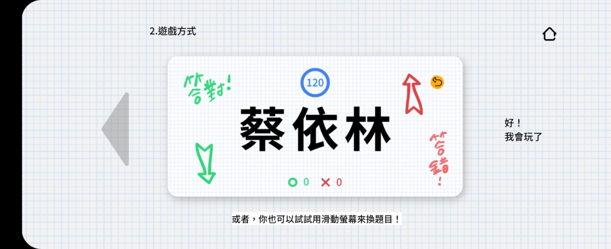 出題時也會看到計時,如果答對就是左邊滑一下,答錯一次就是右邊滑一下。