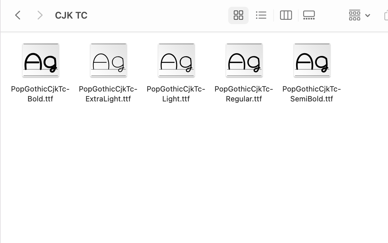 一共區分五種字重,基本上就是先都安裝再說啦。