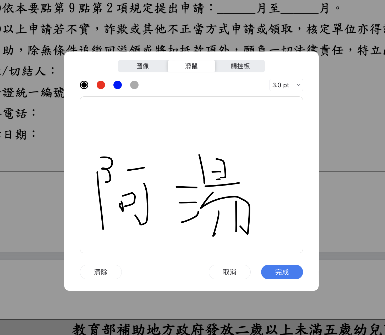 PDFelement 也支援數位簽章,阿湯是建議可以利用手機或平板製作好簽名單後,再來使用,因為用滑鼠寫字真的是很醜啊。