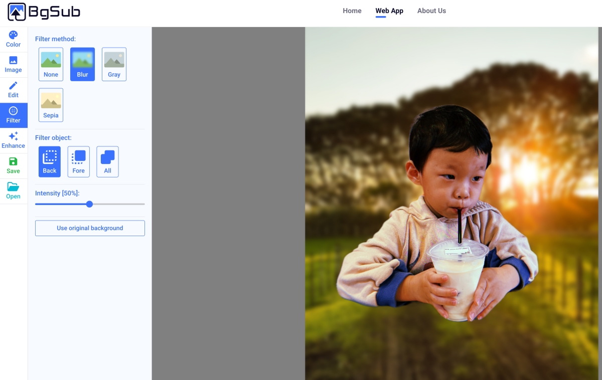 去背的部份也能再選擇虛化的效果,整體來說,BgSub 真的沒話說,功能齊全又免費。