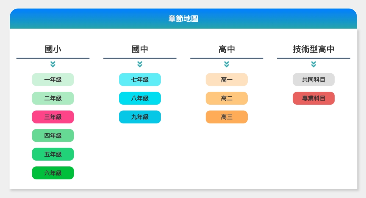 第三個主要是銜接課程內容,如果是國中的話,就會有國中銜接高中職的內容。