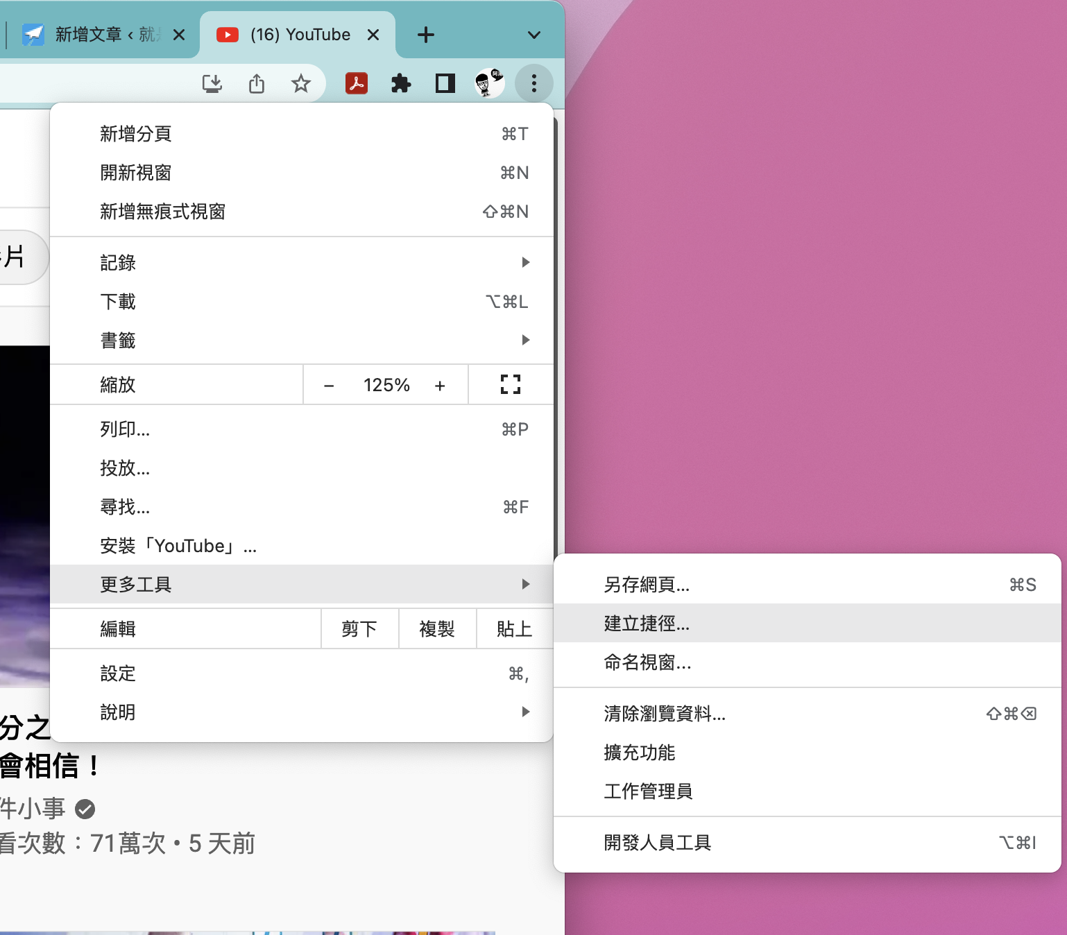 首頁 › 電腦小教室 › 如何在電腦桌面建立任一網站的捷徑,要用時快速開啟 如何在電腦桌面建立任一網站的捷徑,要用時快速開啟 發佈日期:2022/9/28 作者:阿湯 分類:電腦小教室 阿湯現在電腦有安裝的軟體不多,因為大多工作需求都能透過雲端服務來搞定,像我自己 Google Drive 就用的非常的多,平常大概就是打開瀏覽器就能完成我大多數工作,除了修圖、剪輯影片還是得在自己電腦上製作更方便,對於這樣常態的需求,我就會將一些網頁做成捷徑放在電腦桌面,以便可以隨時取用,往下就來跟大家分享要怎麼快速建立。 如何在電腦桌面建立任一網站的捷徑 首先打開你要製作捷徑的任一網站頁面,然後在 Google Chrome 瀏覽器右上角進入更多工具 > 建立捷徑。 輸入要建立的名稱,按下建立。 這時會跳到所有捷徑的資料夾,再將這個建立好的捷徑拖曳到電腦桌面就可以囉。 之後要開啟,就可以直接從桌面上雙擊執行,更方便。 延伸閱讀 Excel 新手救星!10 個職場必學的基本函數教學,效率翻倍就靠這篇 2026/2/18 【2026最新】OpenClaw AI 助理完整安裝教學:免費開源、本地部署,讓電腦自動幫你工作! 2026/2/9 2026 Excel教學懶人包:從 Copilot AI 到 Python,職場必備的高效數據處理術 2026/1/27 macOS教學 - 如何設定自動開機/關機排程? 2025/1/5