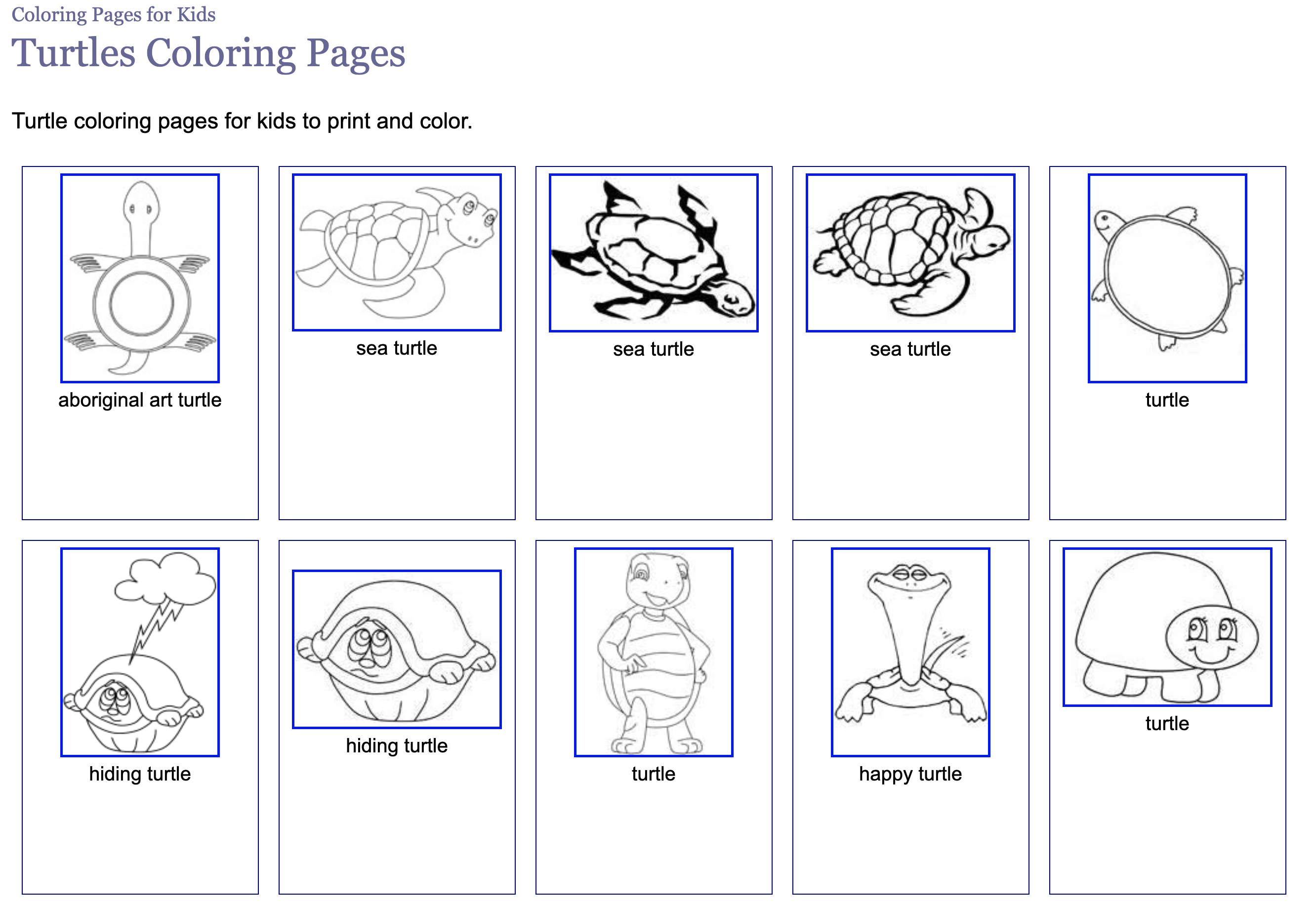 像烏龜就有各式各樣,有很實際樣子的也有比較 Q 版的,也有很簡單線條的,剛好適合各種不同年紀的小朋友來畫畫。