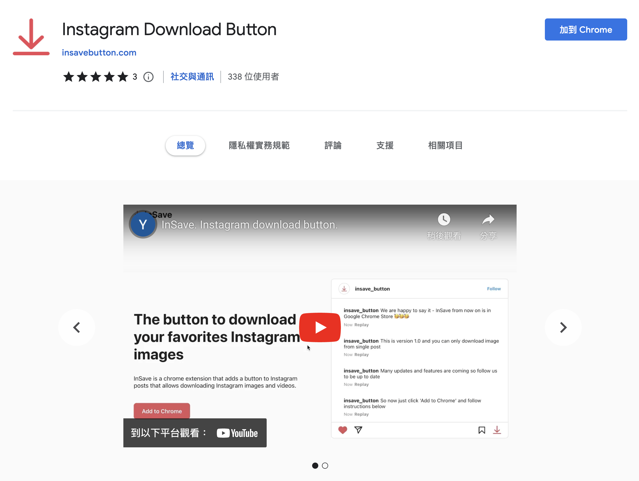 接下來請安裝 Instagram Download Button,把他加到 Chrome 上。