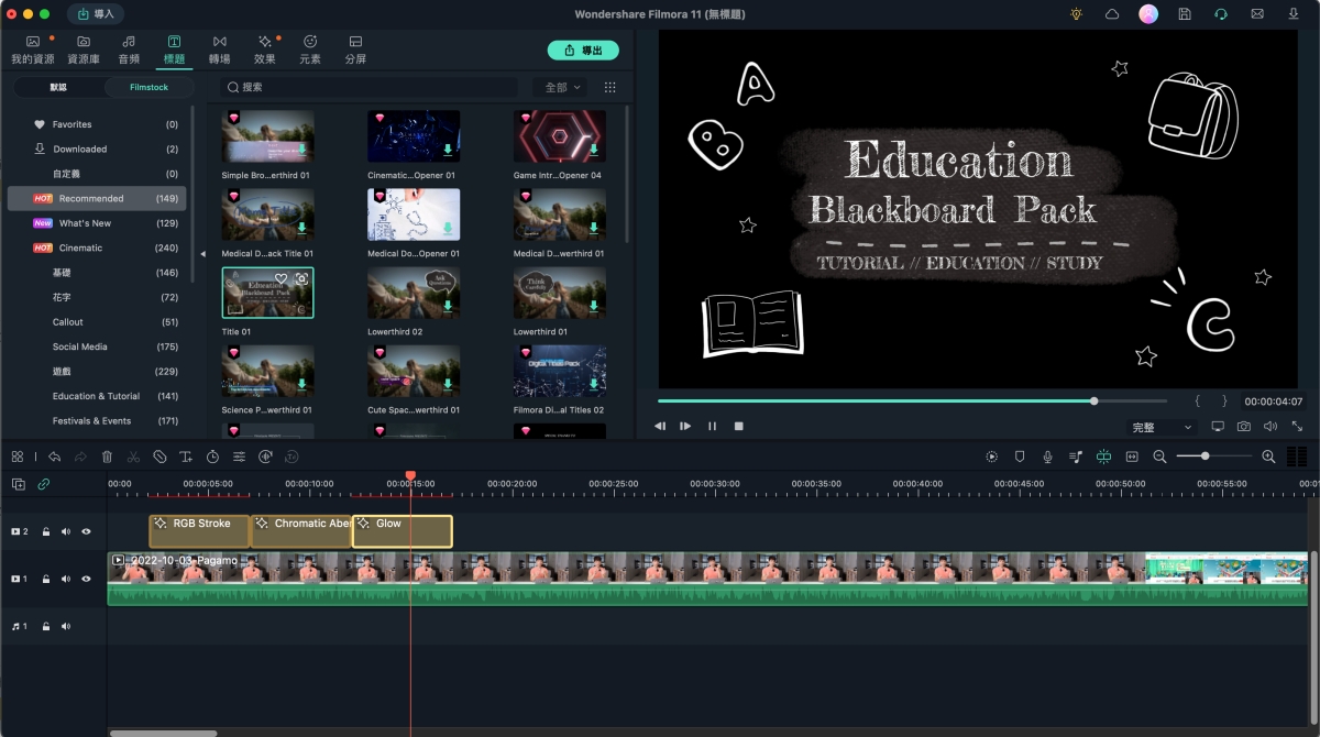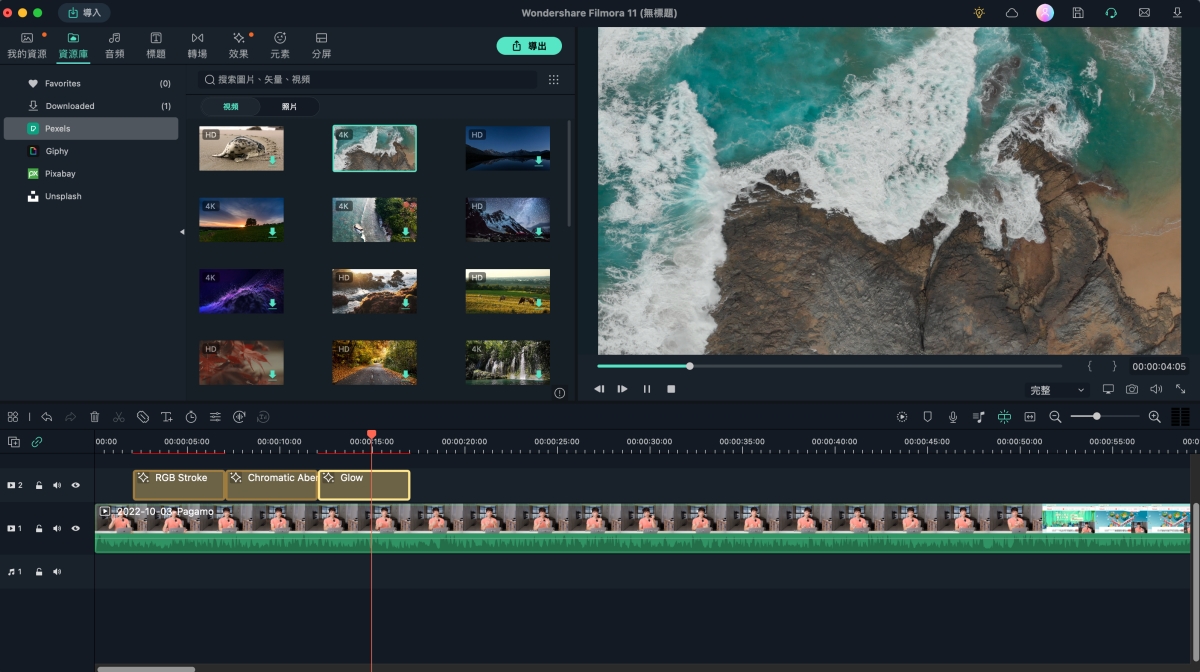 而阿湯覺得還有一點很棒,就是免費的一些影片素材,Filmora 與 Pexels、Giphy、Pixabay、Unsplash 合作,直接提供不少高品質的影片素材,在剪輯影片時也能有更多運用。