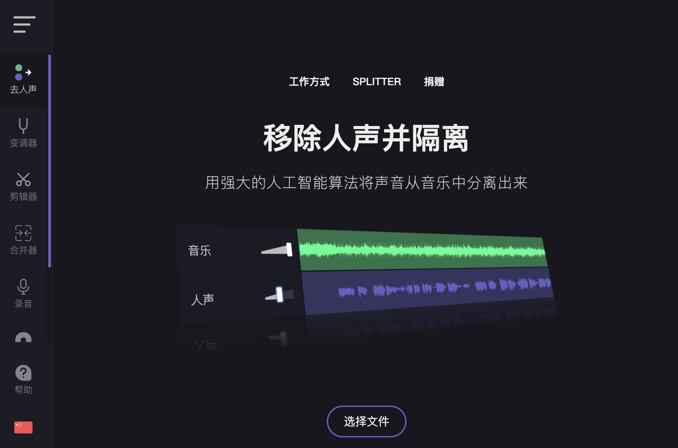 網站:https://vocalremover.org/zh/進入網站後,左側就有各個功能可以直接選擇。